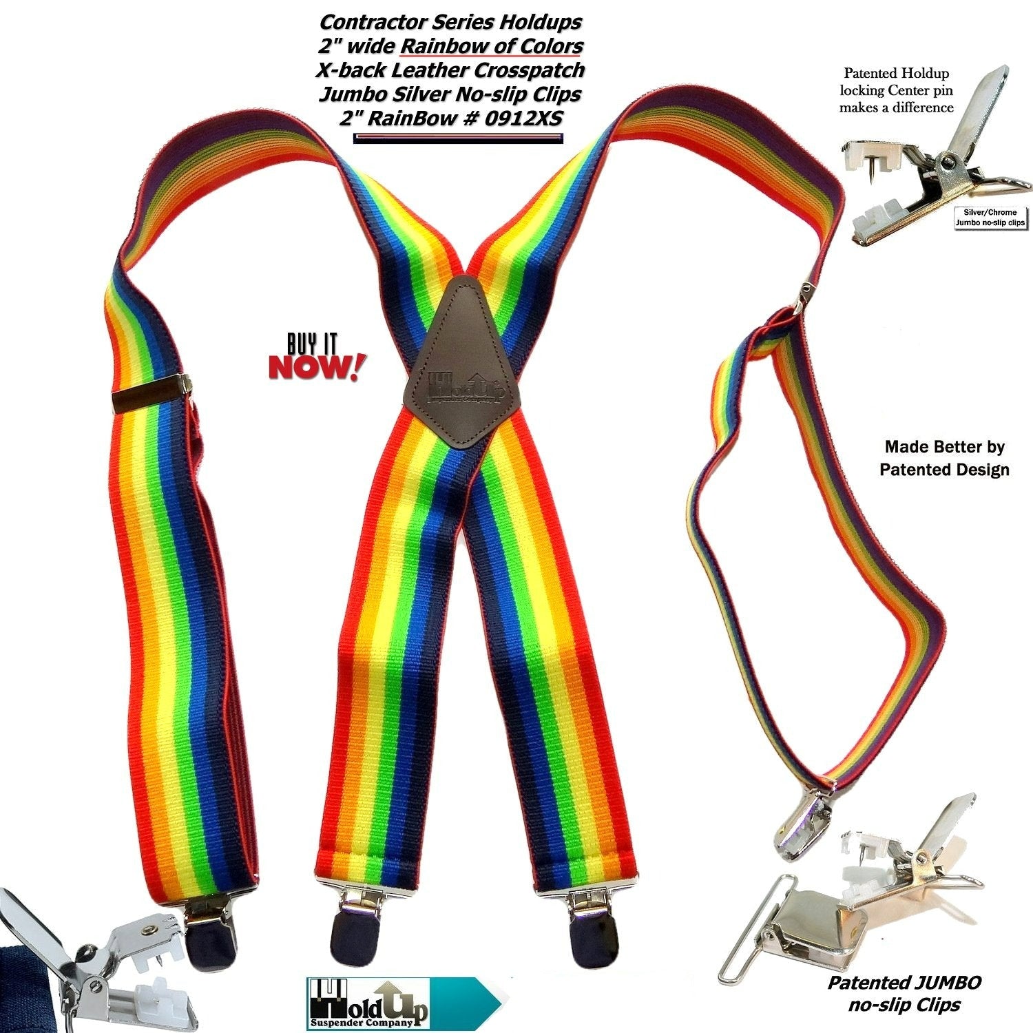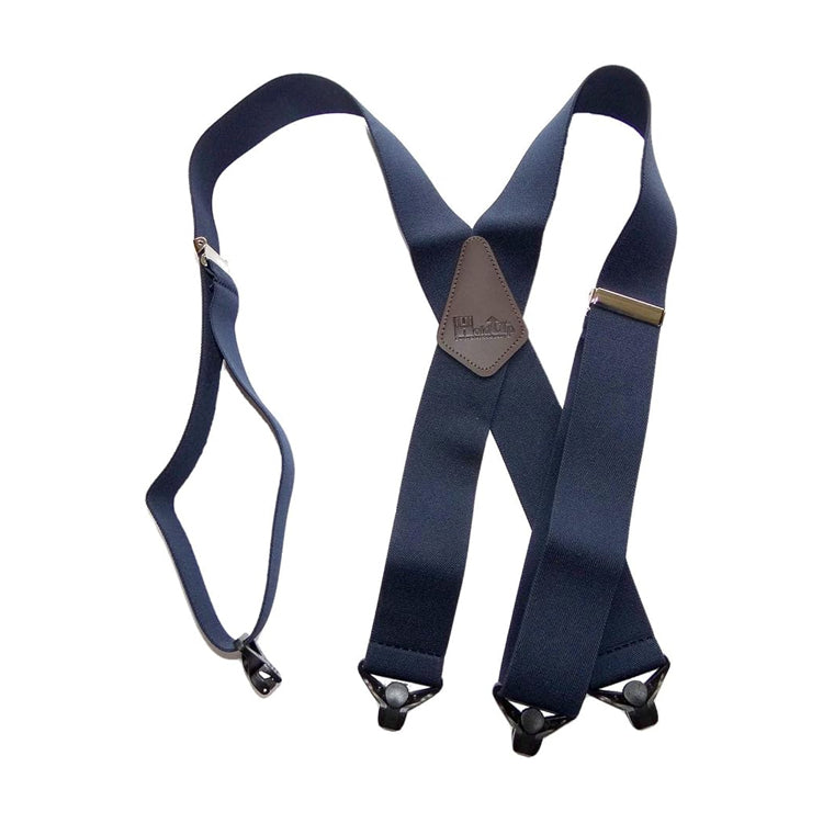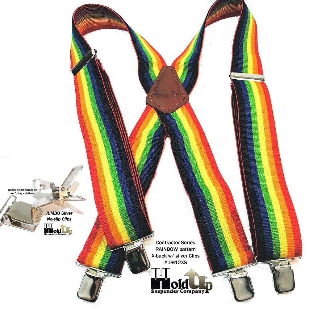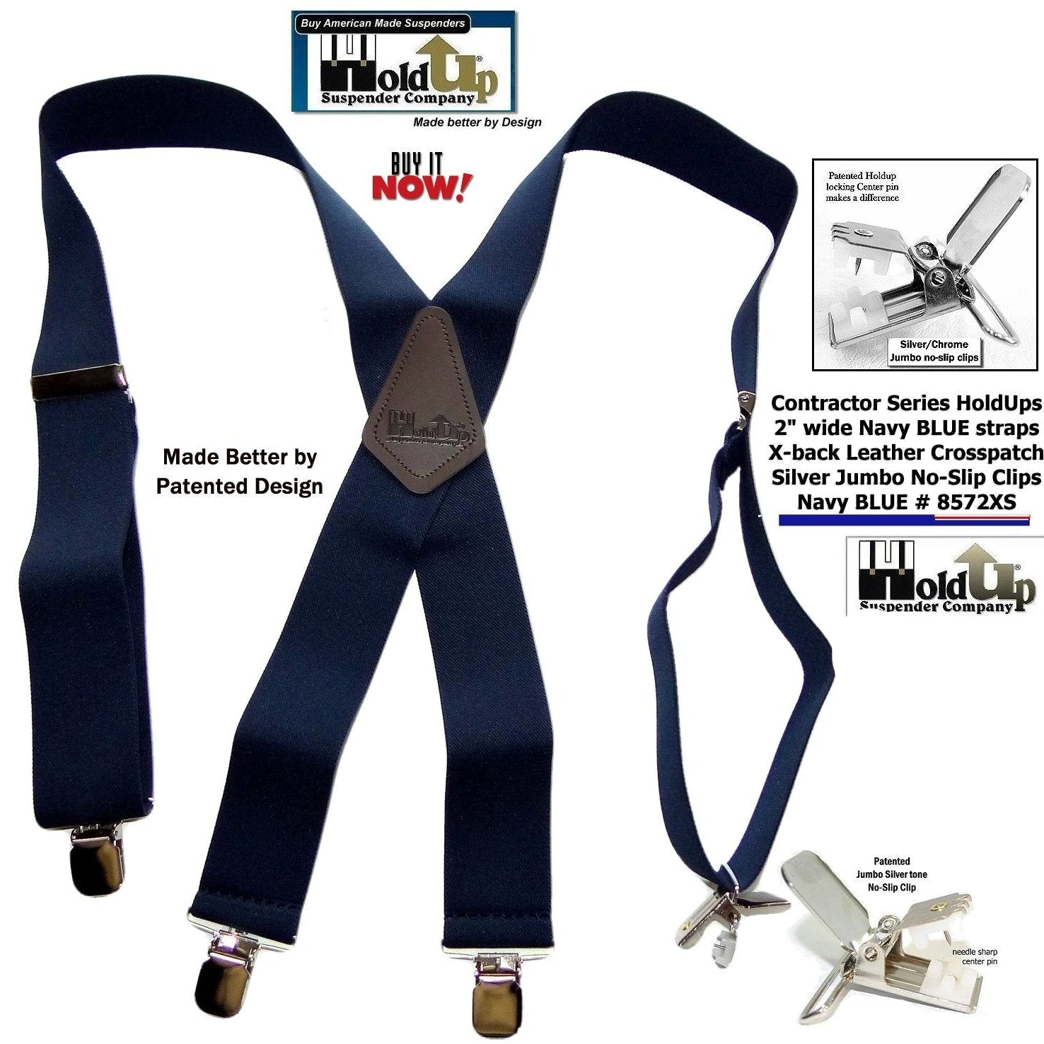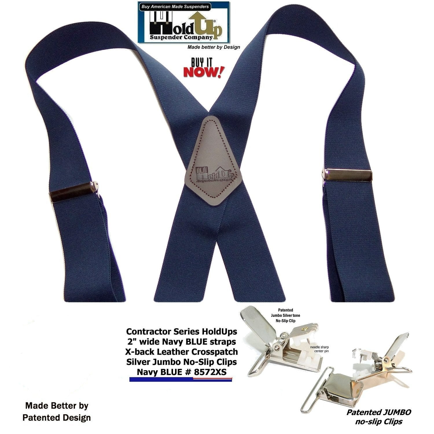 All materials are carefully chosen for elasticity, durability and Holdup's come with a limited clip guarantee that they'll never slip-slide or Pop Off your pants. Buy one of these Holdup Suspenders in a heavy-duty 2" width that are built to last a limited! All have our exclusive heavy-duty jumbo no-slip clips or Black Jumbo Gripper Clasps attached on the 4 USA made elastic suspender straps. The Holdup logo is embossed in the X-back brown leather crosspatch made from top-grade leather. Now featuring a light and Dark denim work suspenders and a 2 inch wide USA Flag pattern style on sale at our Amazon Holdup Suspender Web Shop. Get heavy-duty work suspenders for the working man from a USA company committed to being America's premier pant suspender manufacturer. You may pay by using your Amazon or PayPal account or using your preferred credit/Debit Card with Free Freight option at checkout.