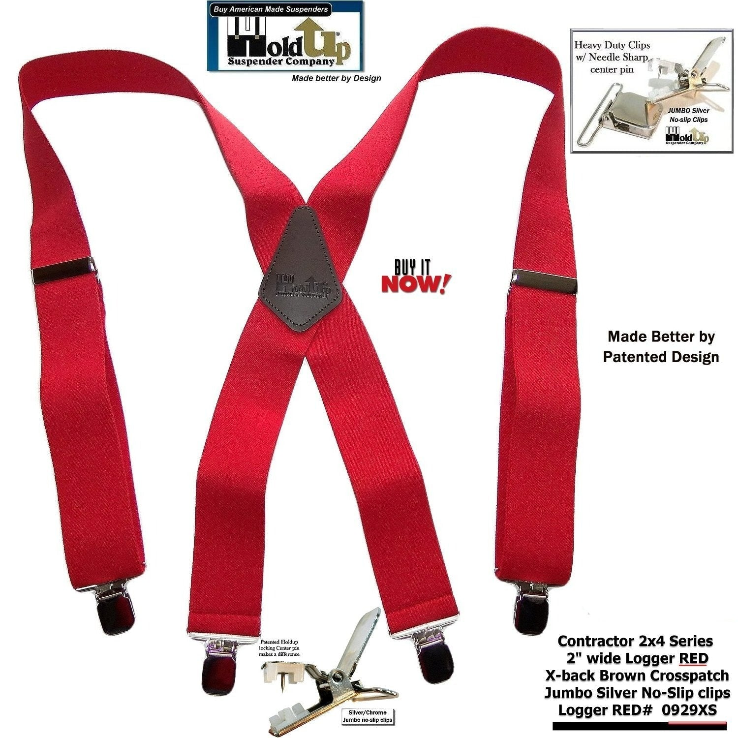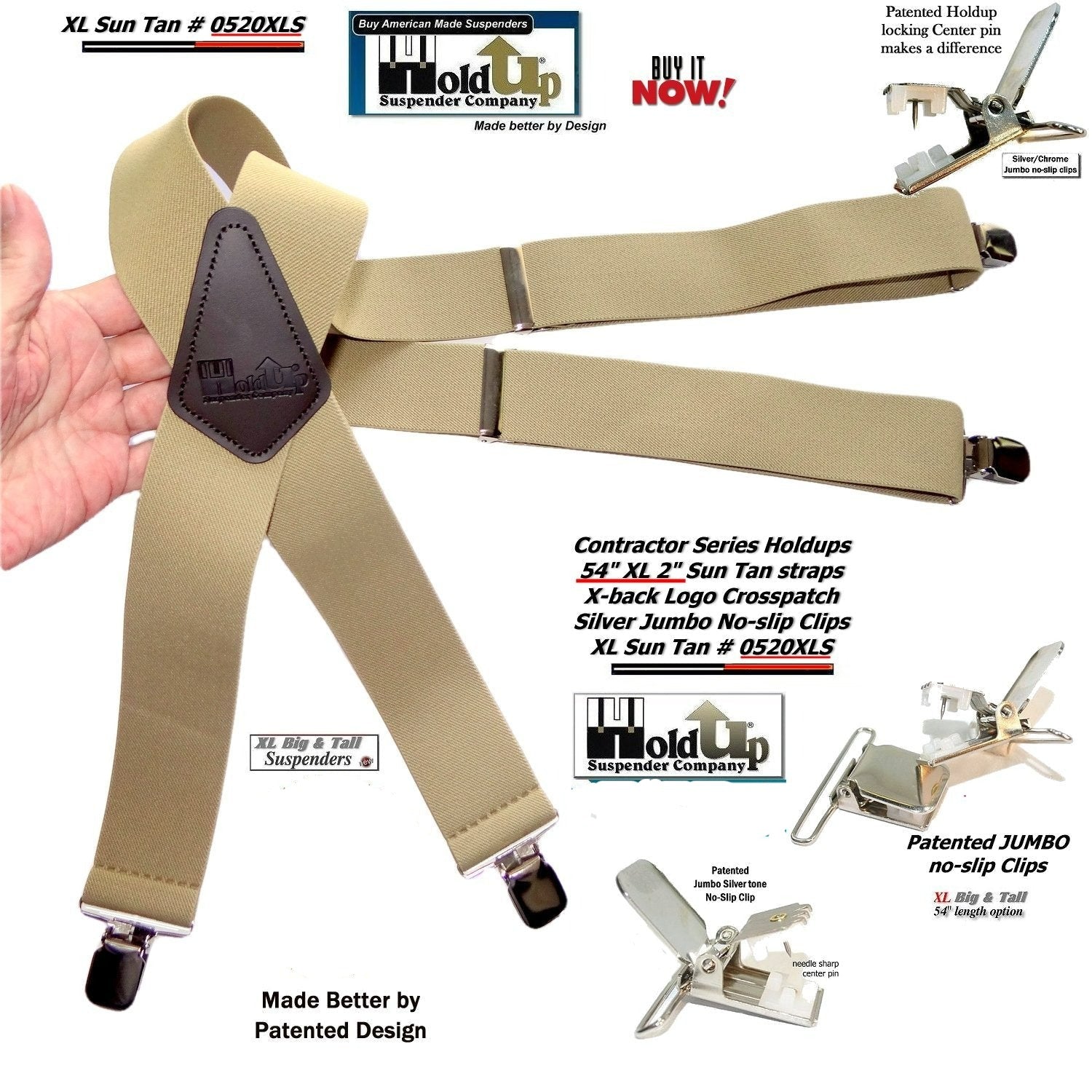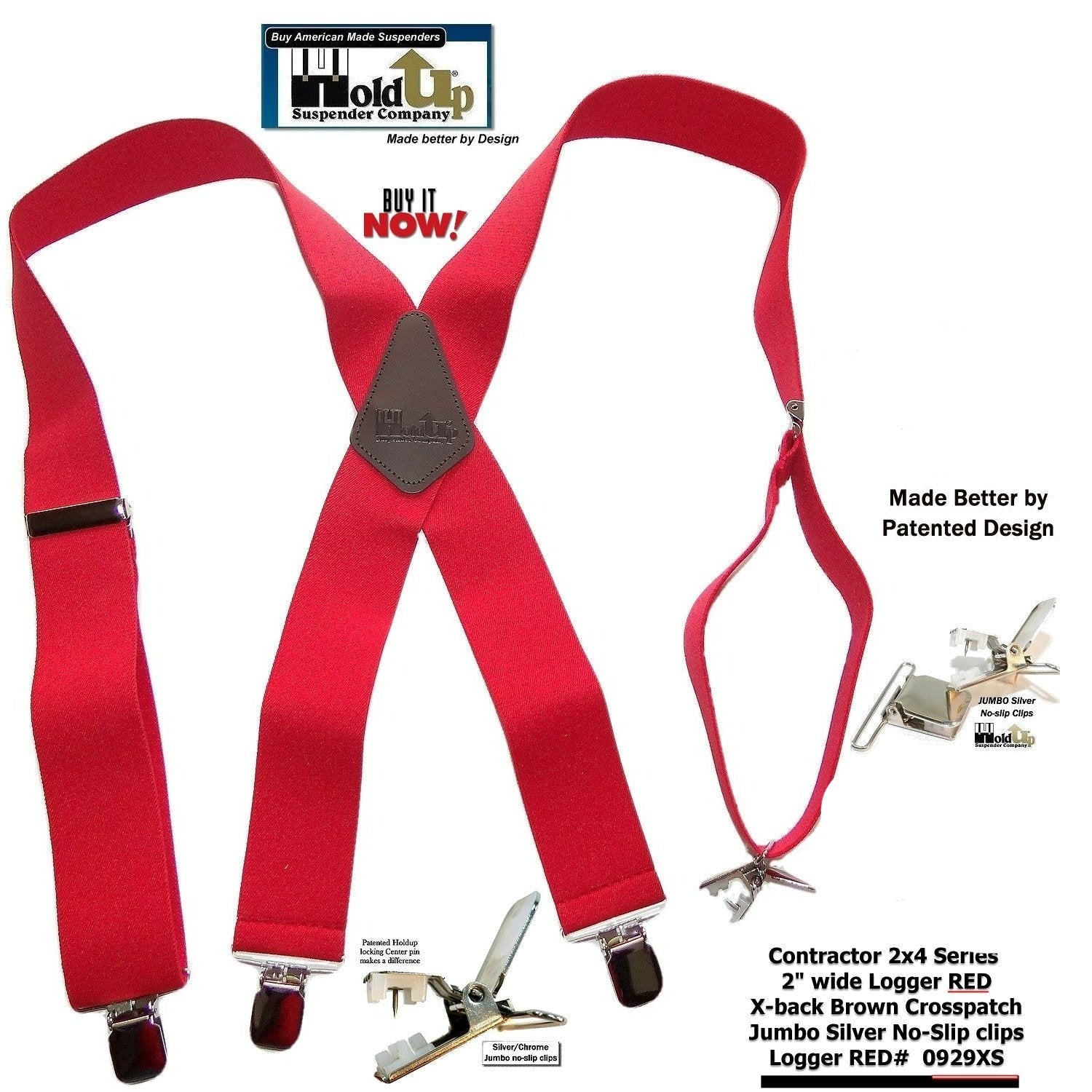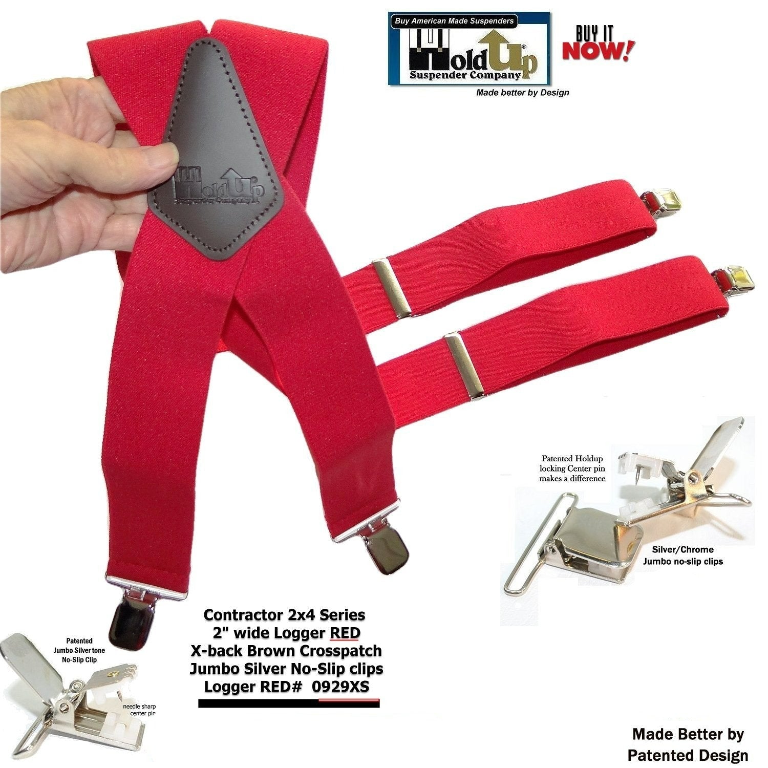 The 2x4 Jumbo Clip Line Contractor Series work suspenders are specifically designed for securely holding up a working man's pants. With everything imaginable hanging from your pant waistband, it's hard to keep them up with just an ordinary belt. The contractor work suspender is specially designed with wider straps and our USA Patented Silver-tone No-slip center pin type clips or the new strong composite plastic cam-actuated Gripper Clasps to assure your Always Up with maximum comfort. These make perfect gifts for that hard-working man who knows the limitations of conventional wide work suspenders with cheap webbing and inferior suspender clips.
