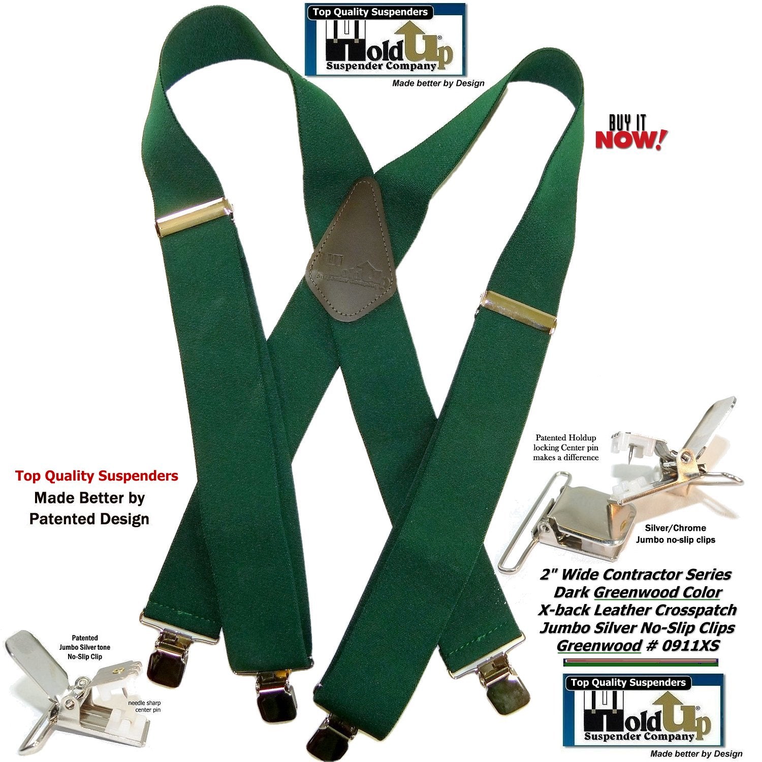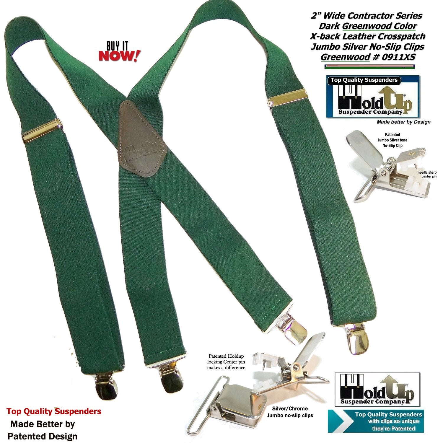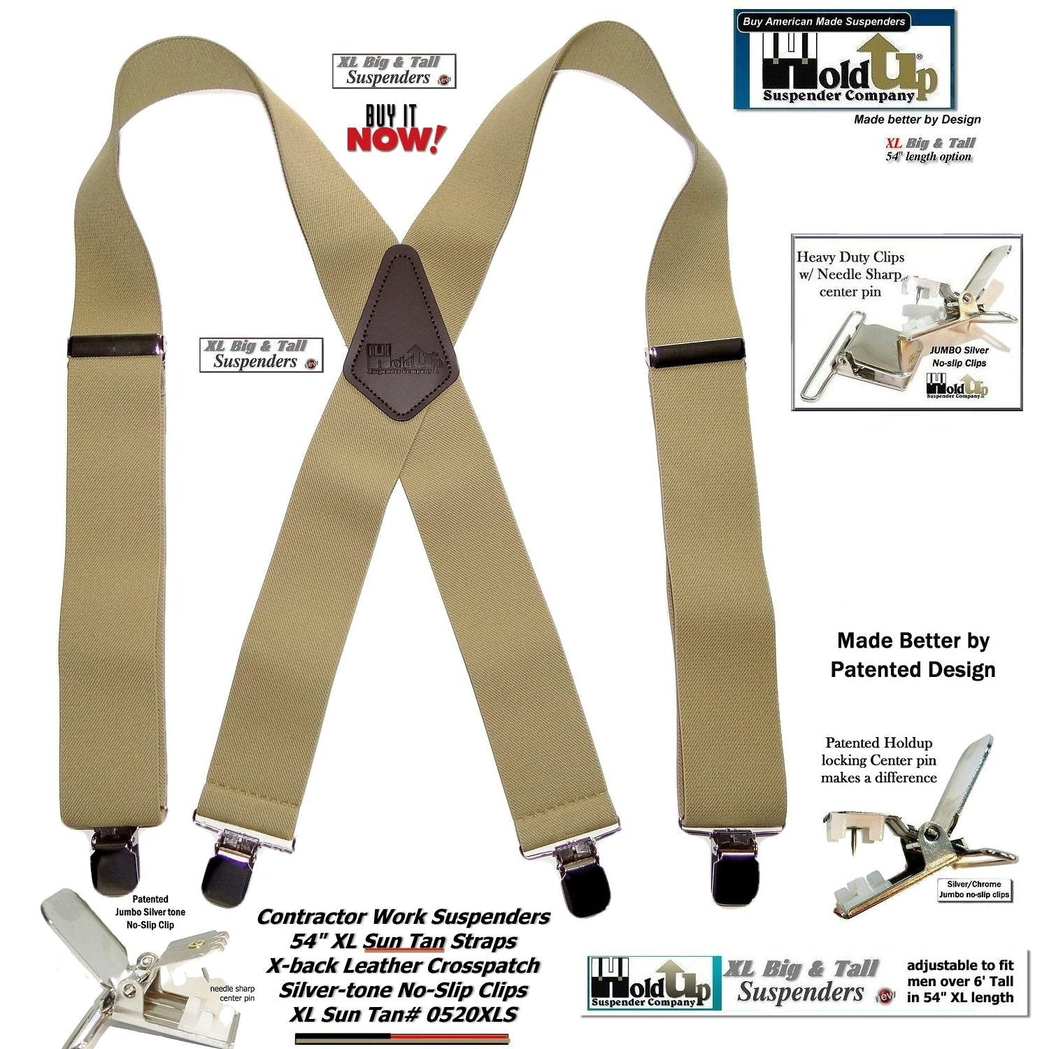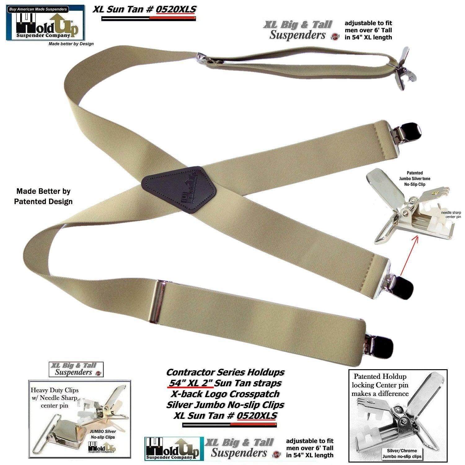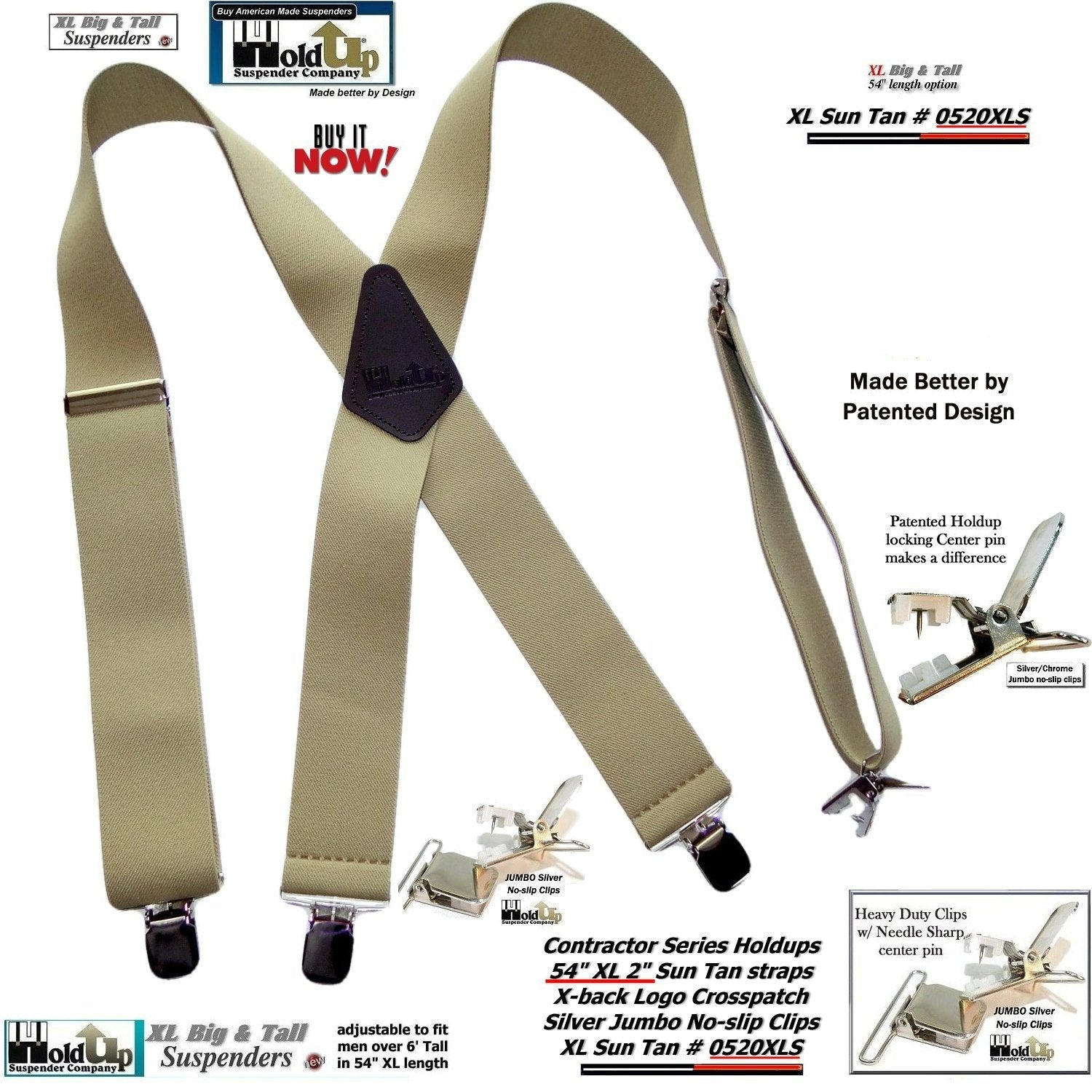 The 2x4 Jumbo Clip Line Contractor Series work suspenders are specifically designed for securely holding up a working man's pants. With everything imaginable hanging from your pant waistband, it's hard to keep them up with just an ordinary belt. The contractor work suspender is specially designed with wider straps and our USA Patented Silver-tone No-slip center pin type clips or the new strong composite plastic cam-actuated Gripper Clasps to assure your Always Up with maximum comfort. These make perfect gifts for that hard-working man who knows the limitations of conventional wide work suspenders with cheap webbing and inferior suspender clips.
