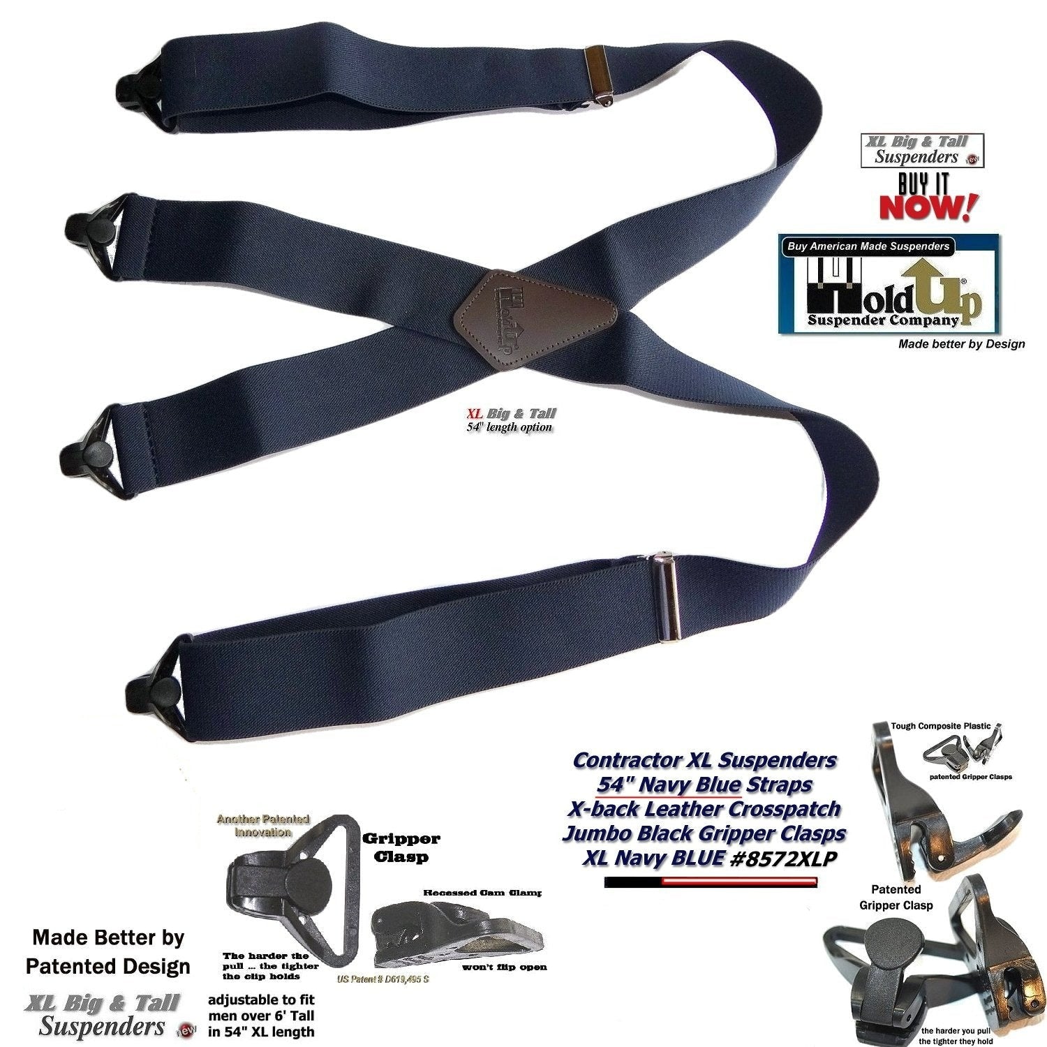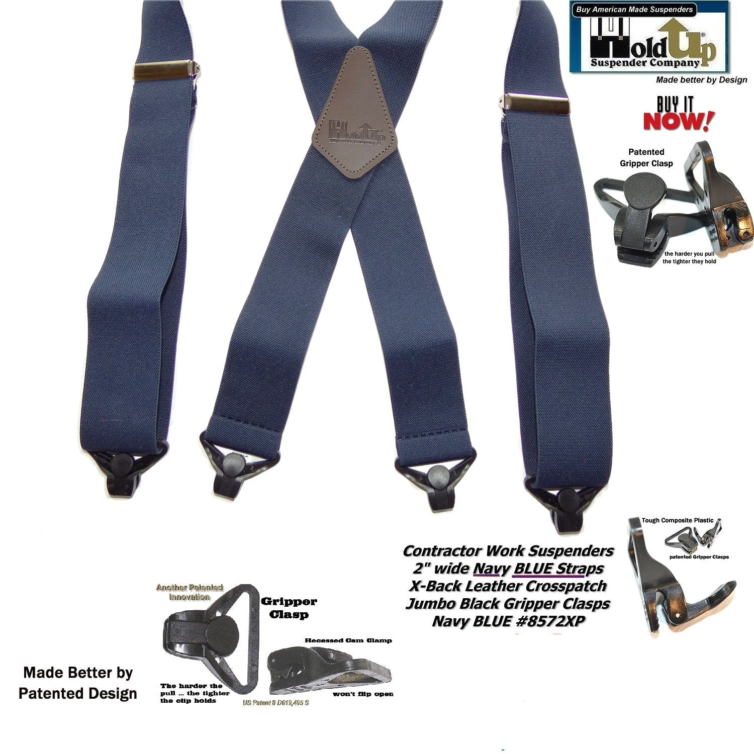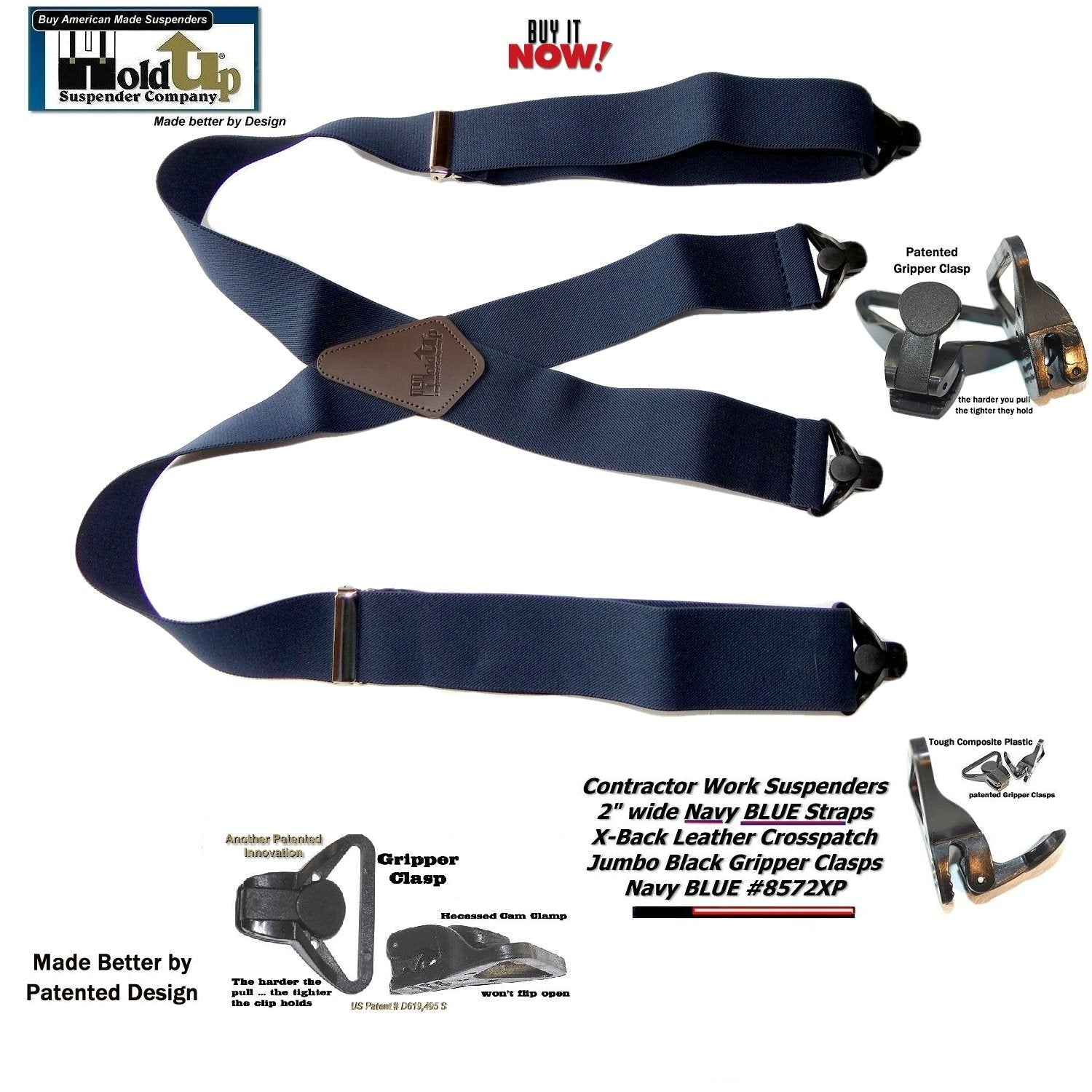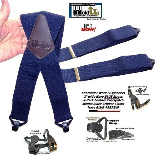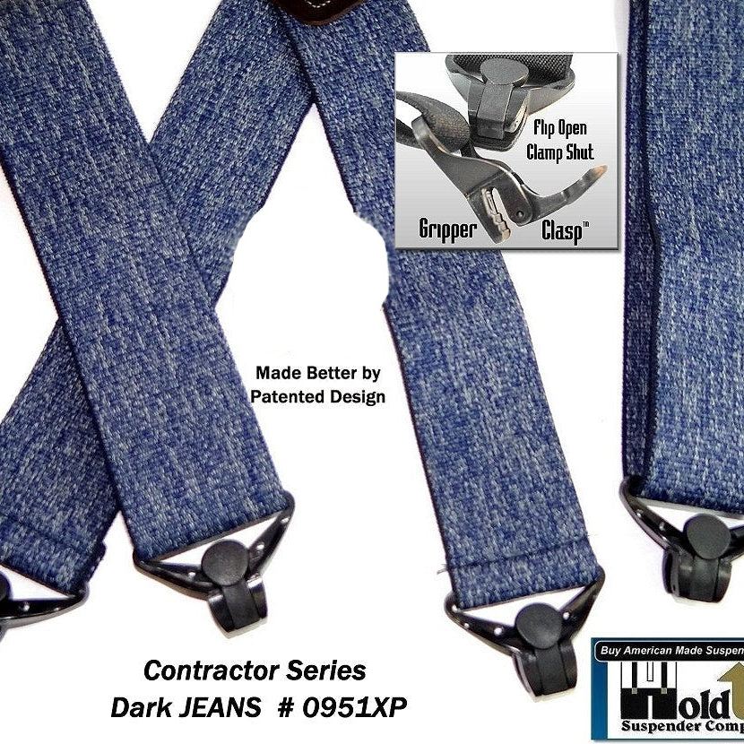 Contractor Series Work Suspenders with USA Patented Jumbo No-slip Clips or Gripper Clasps