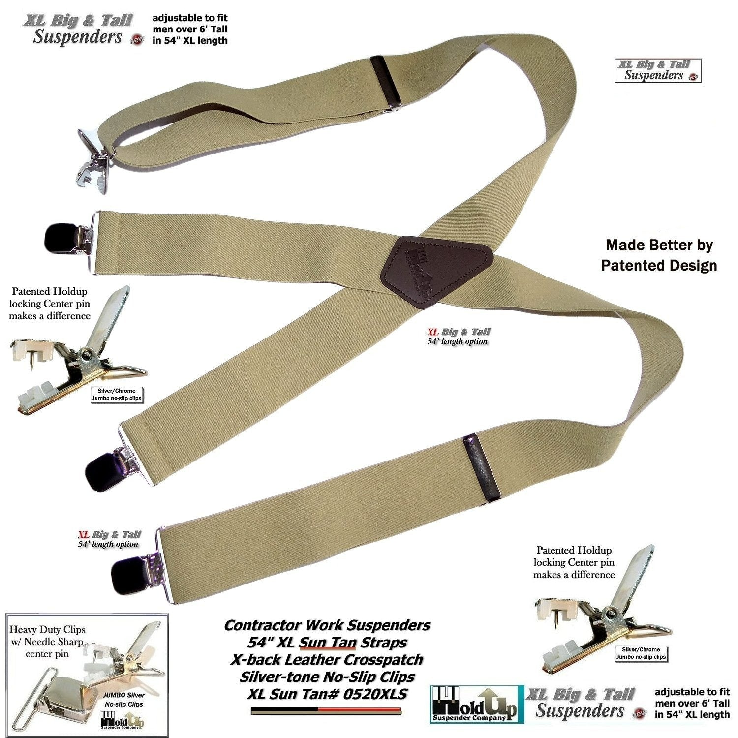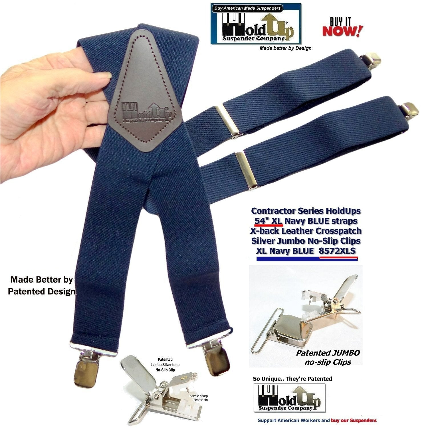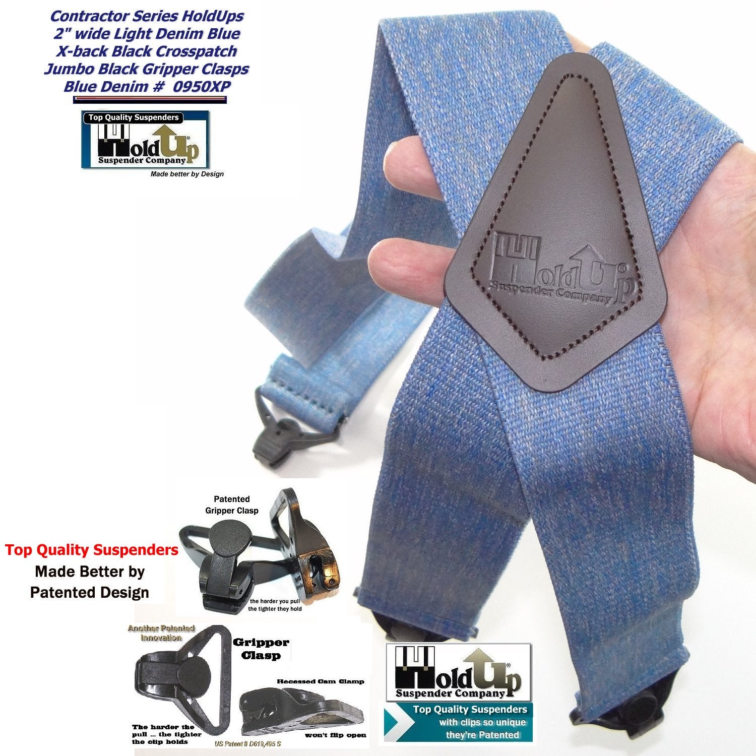 Contractor Series Work Suspenders with USA Patented Jumbo No-slip Clips or Gripper Clasps