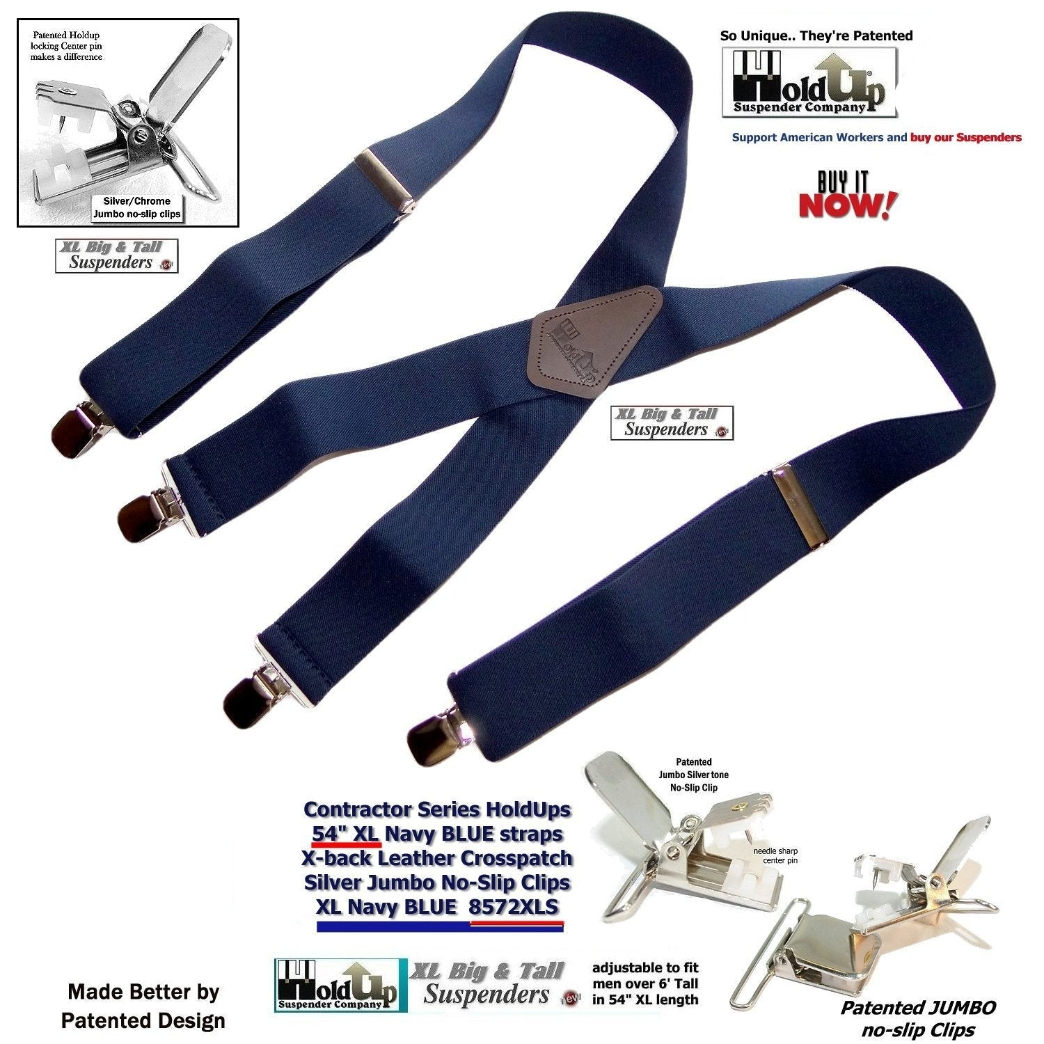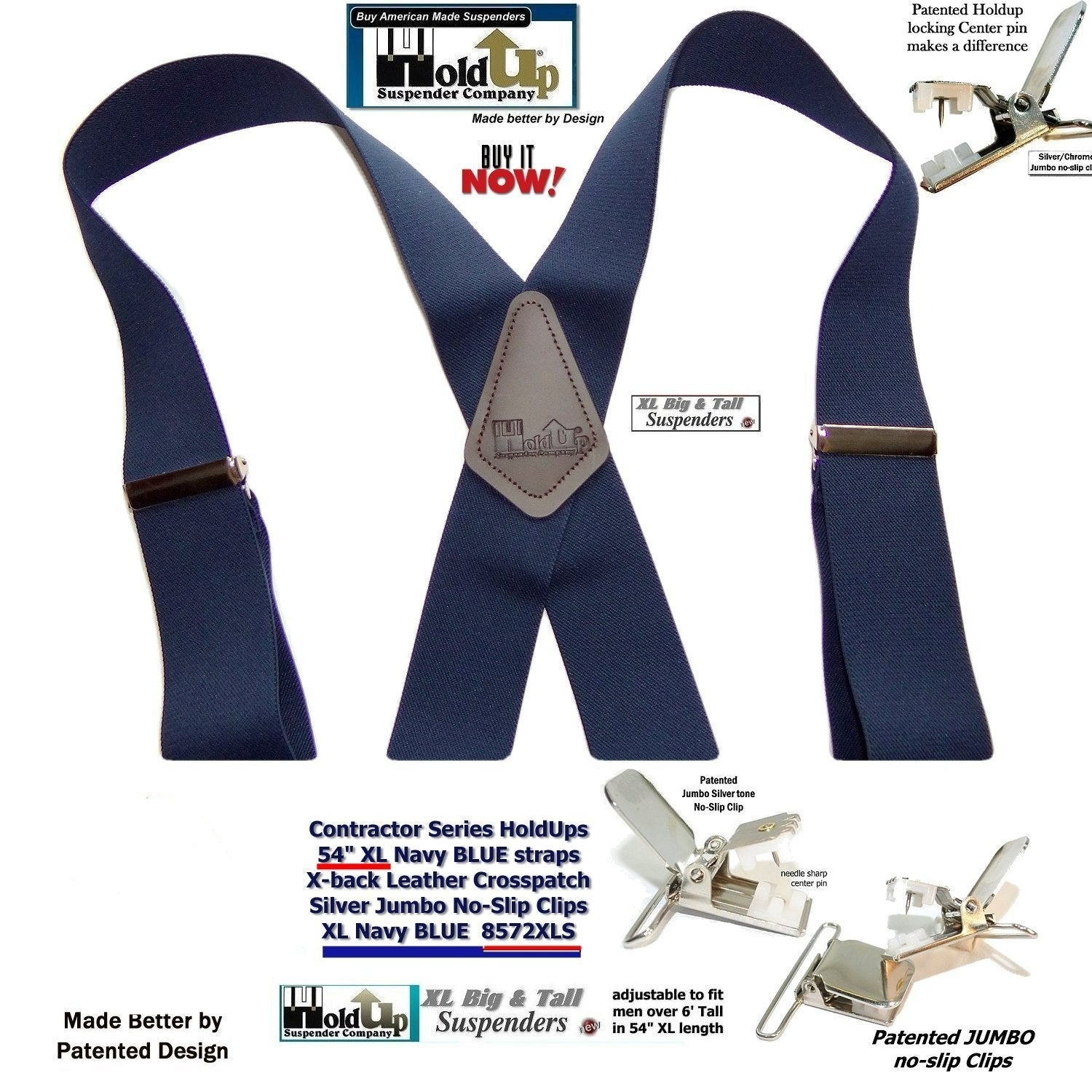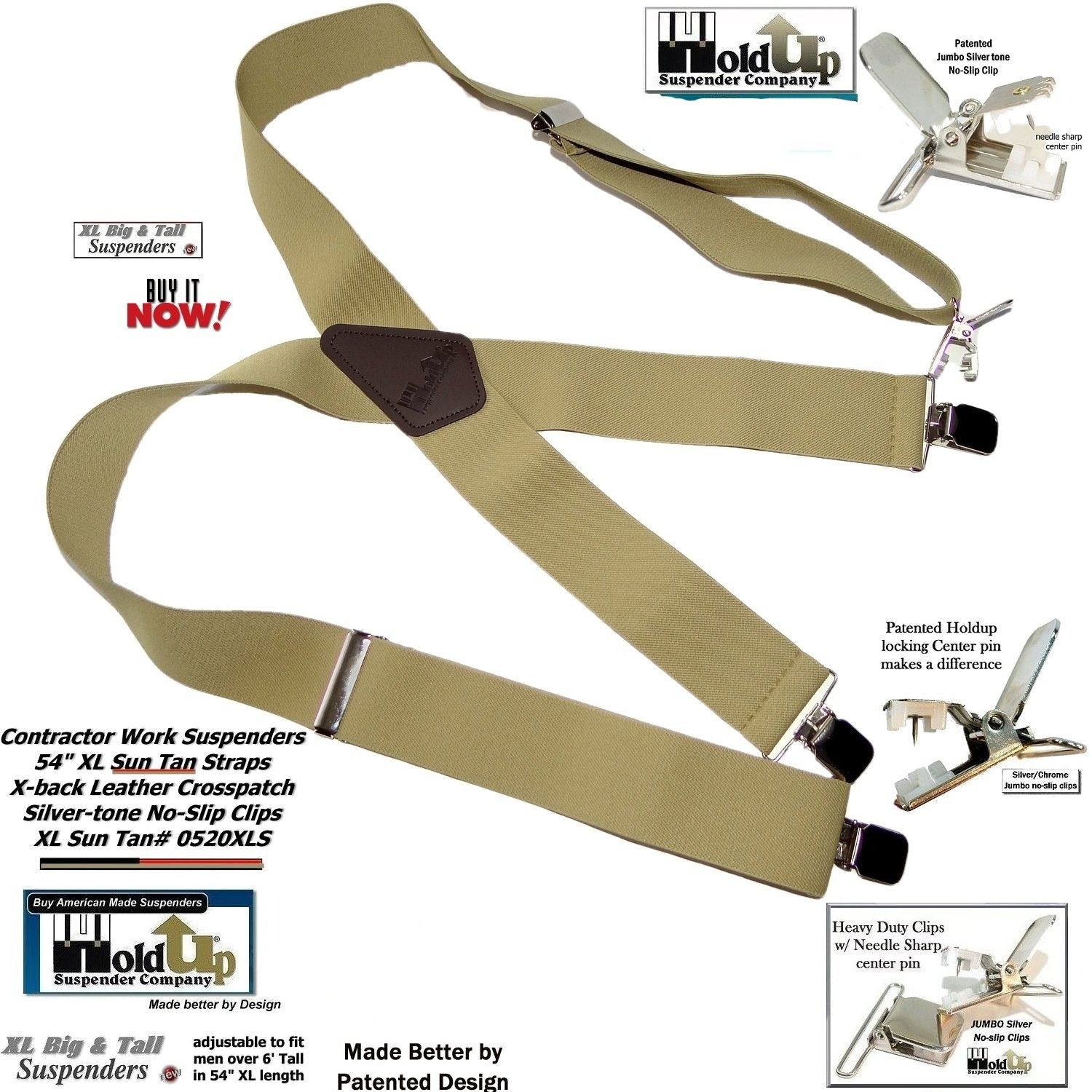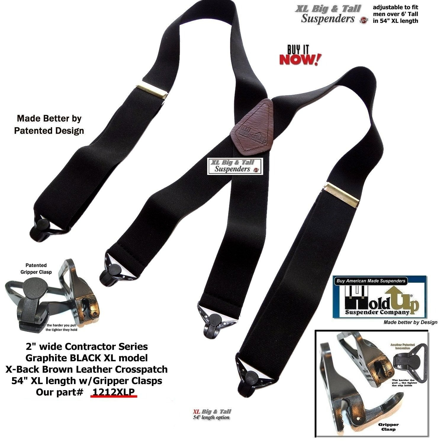 Contractor Series Work Suspenders with USA Patented Jumbo No-slip Clips or Gripper Clasps