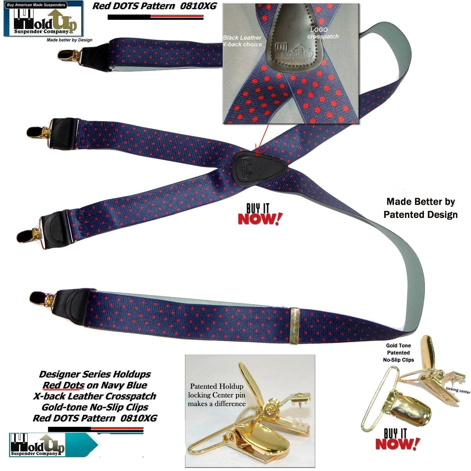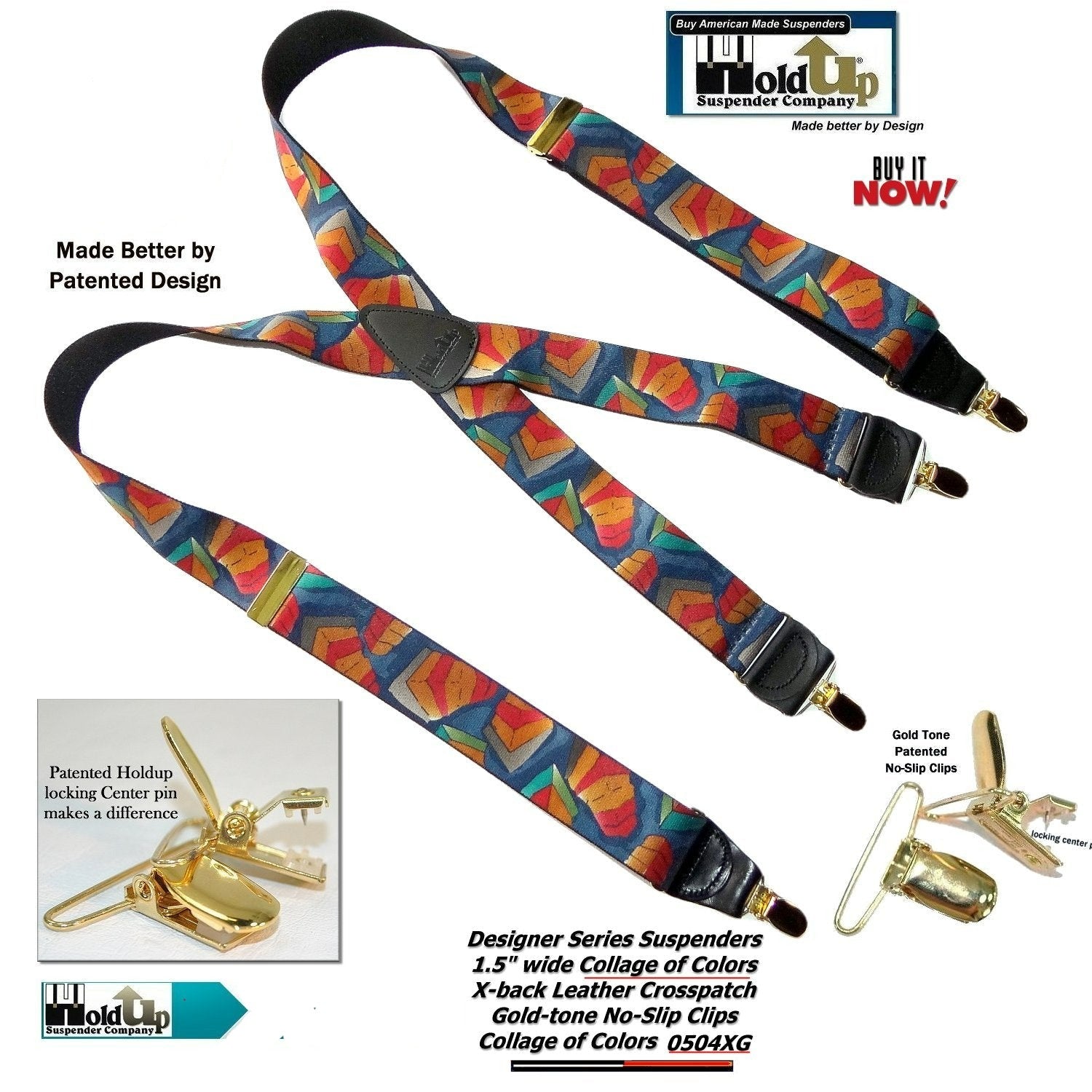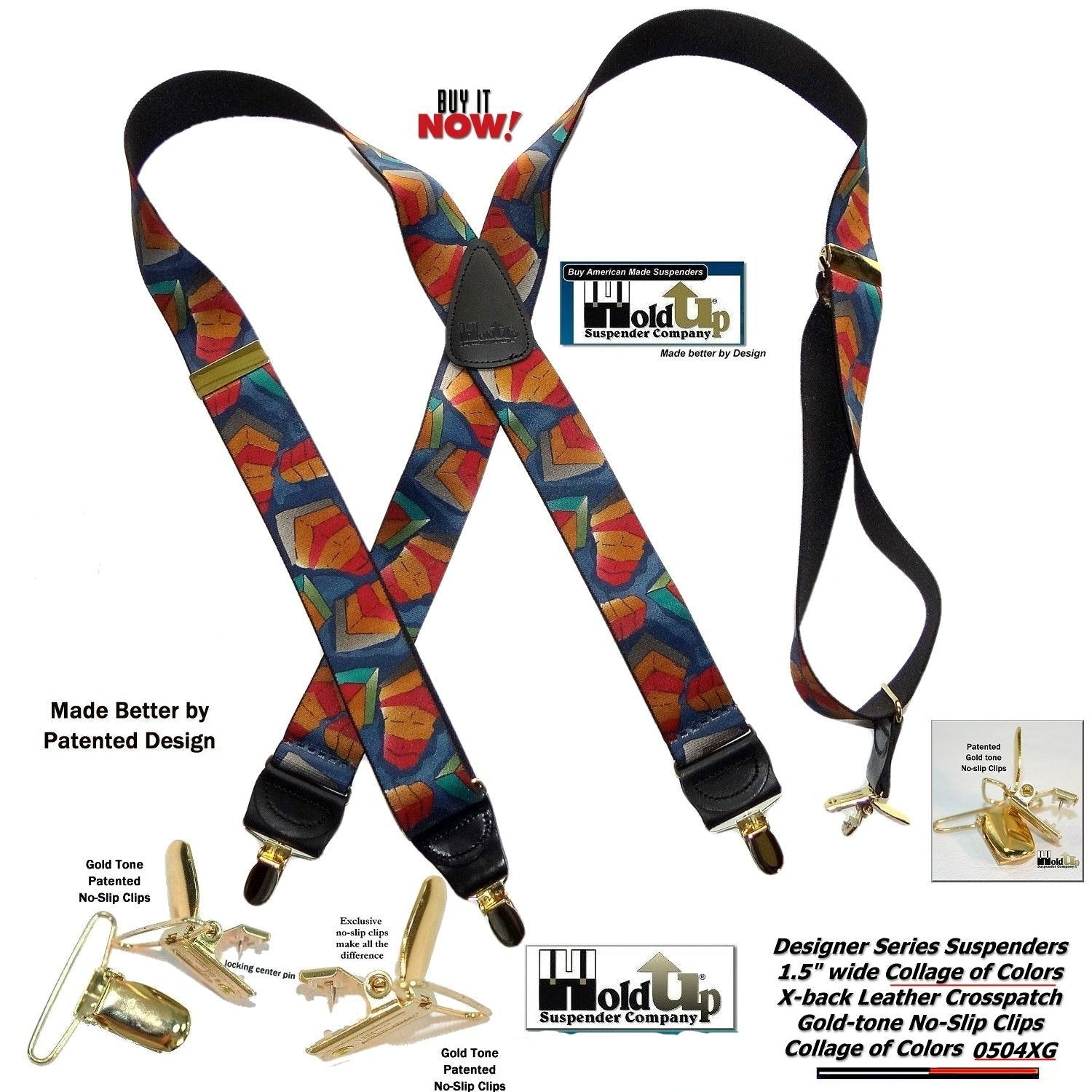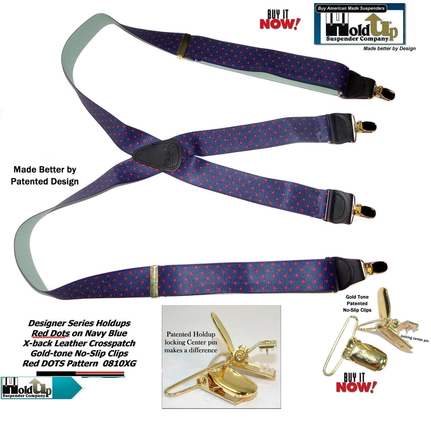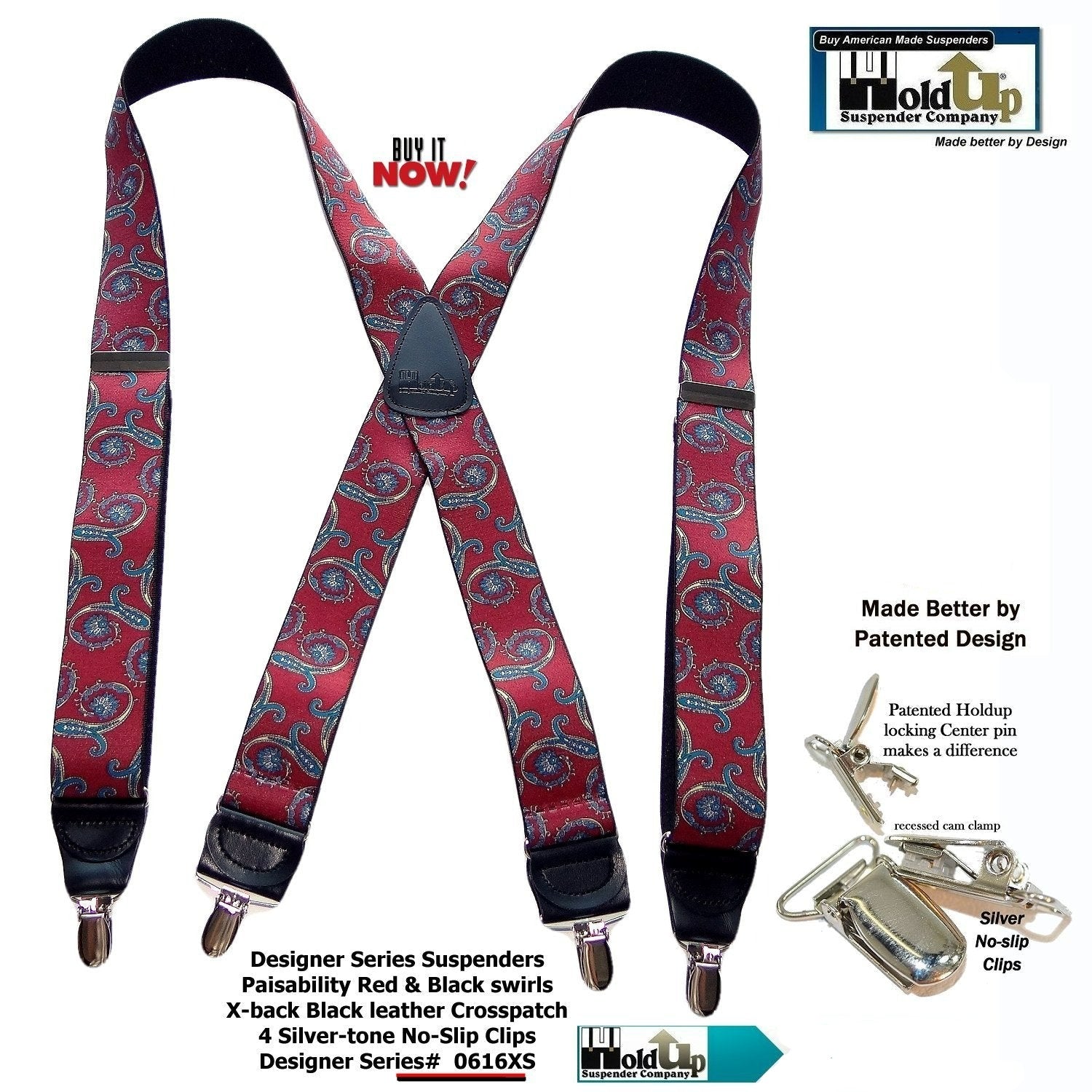 - The DESIGNER SERIES suspenders have 1 1/2" wide straps and have a black leather crosspatch embossed with our Holdup Logo in choice of Y or X-back styles.