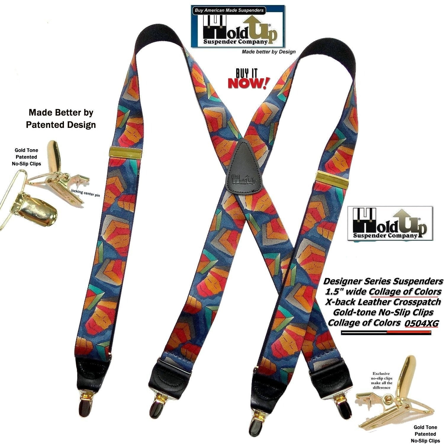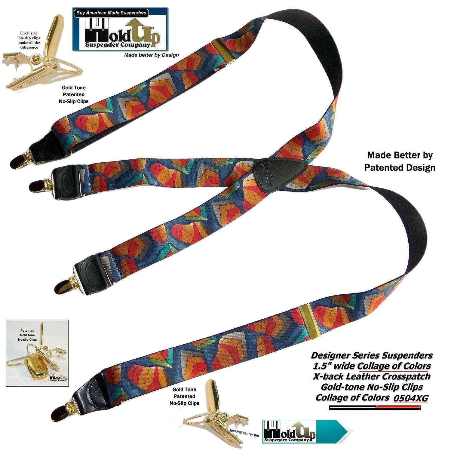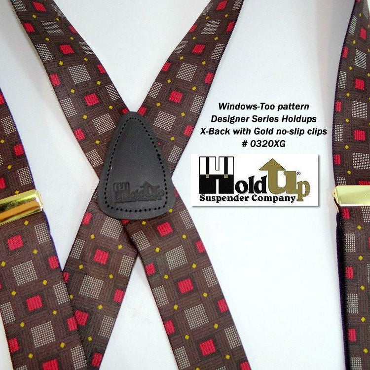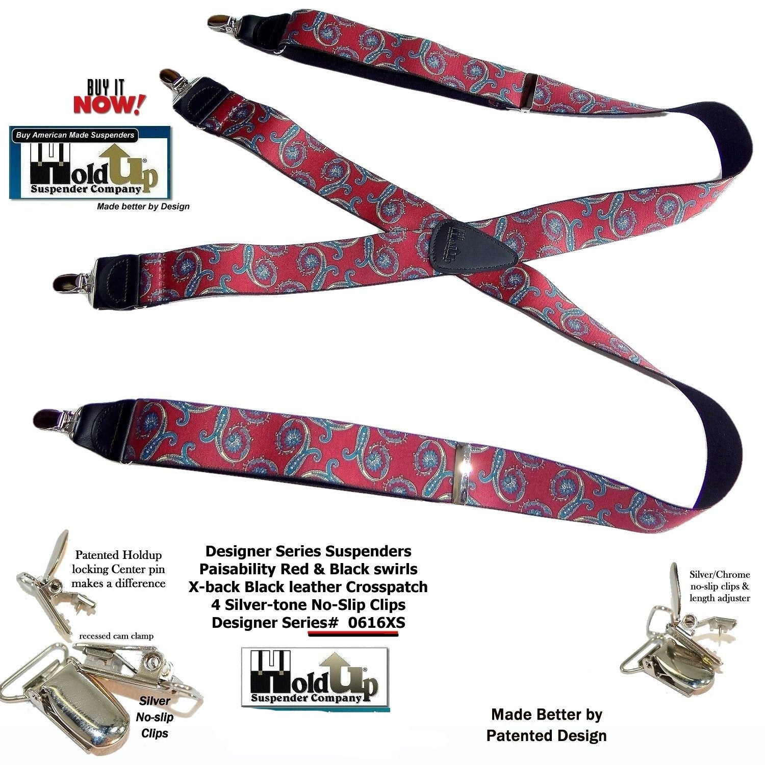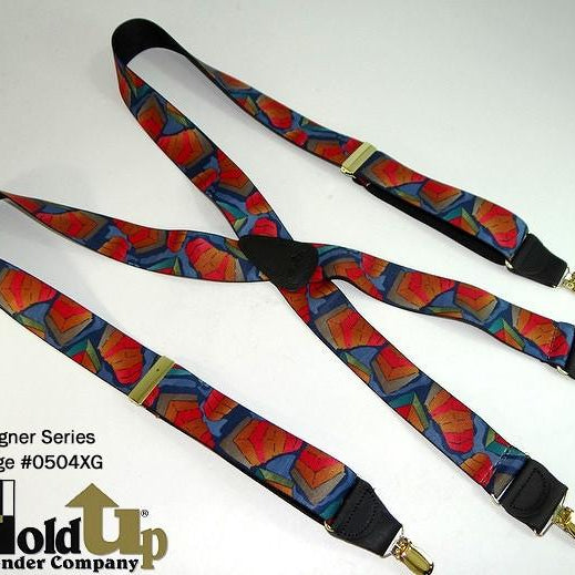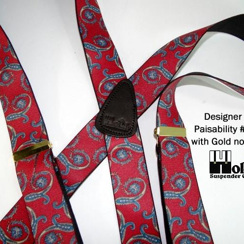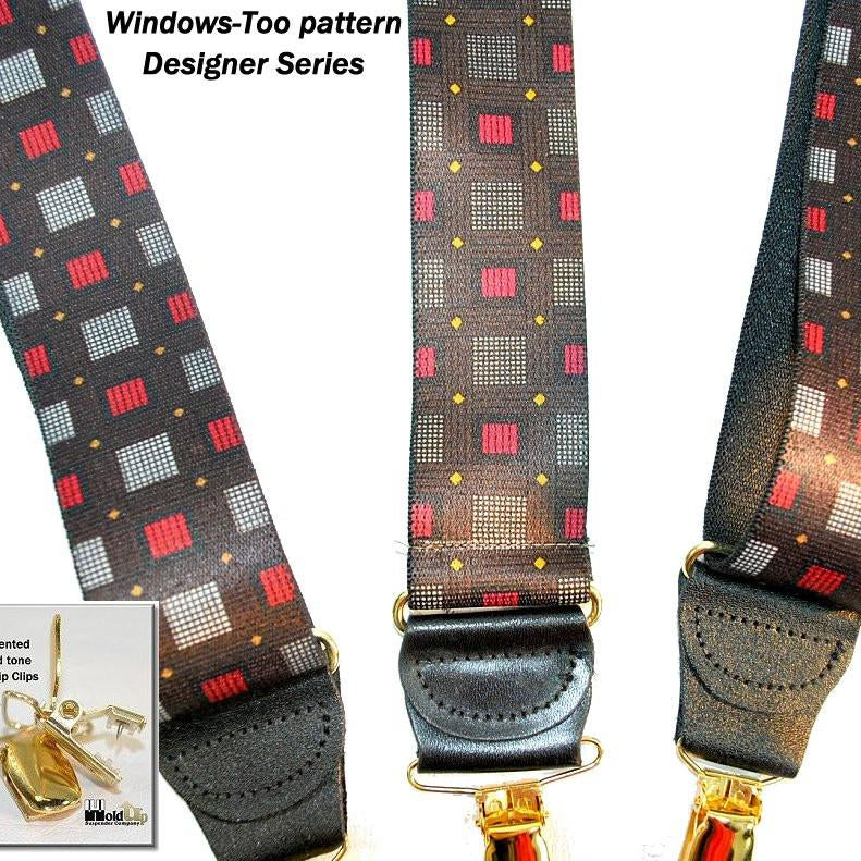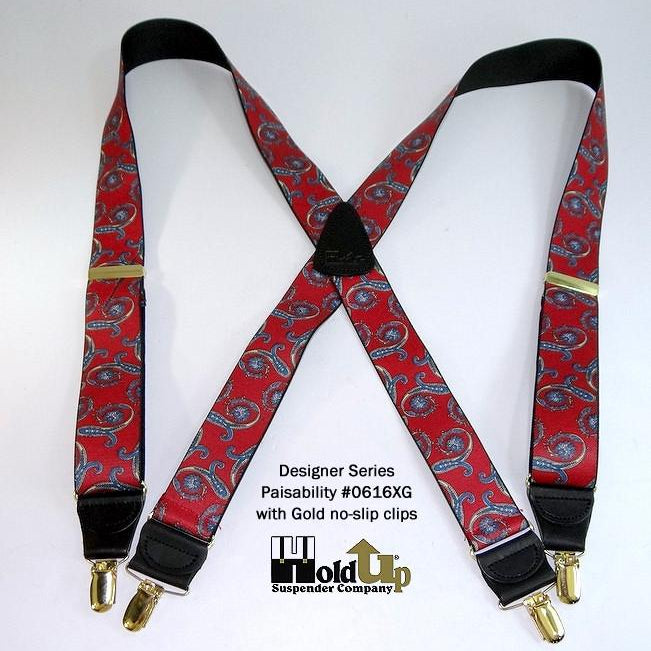All Holdup strap materials are carefully chosen for durability and pleasing patterns when worn with solid color dress shirts. If you need a pair of clip-on suspenders that give you a choice of Y or X-back style, and gold or silver finished no-slip USA patented clips.. then we'd always suggest a pair of Designer Series Holdup Suspenders for you or a friend. These designer pattern suspenders are sold here at Amazon for regular and Amazon Prime terms and carry our 30 day money back 100% satisfaction guarantee. Many styles are discounted 40% so act quick as they're in limited supply.