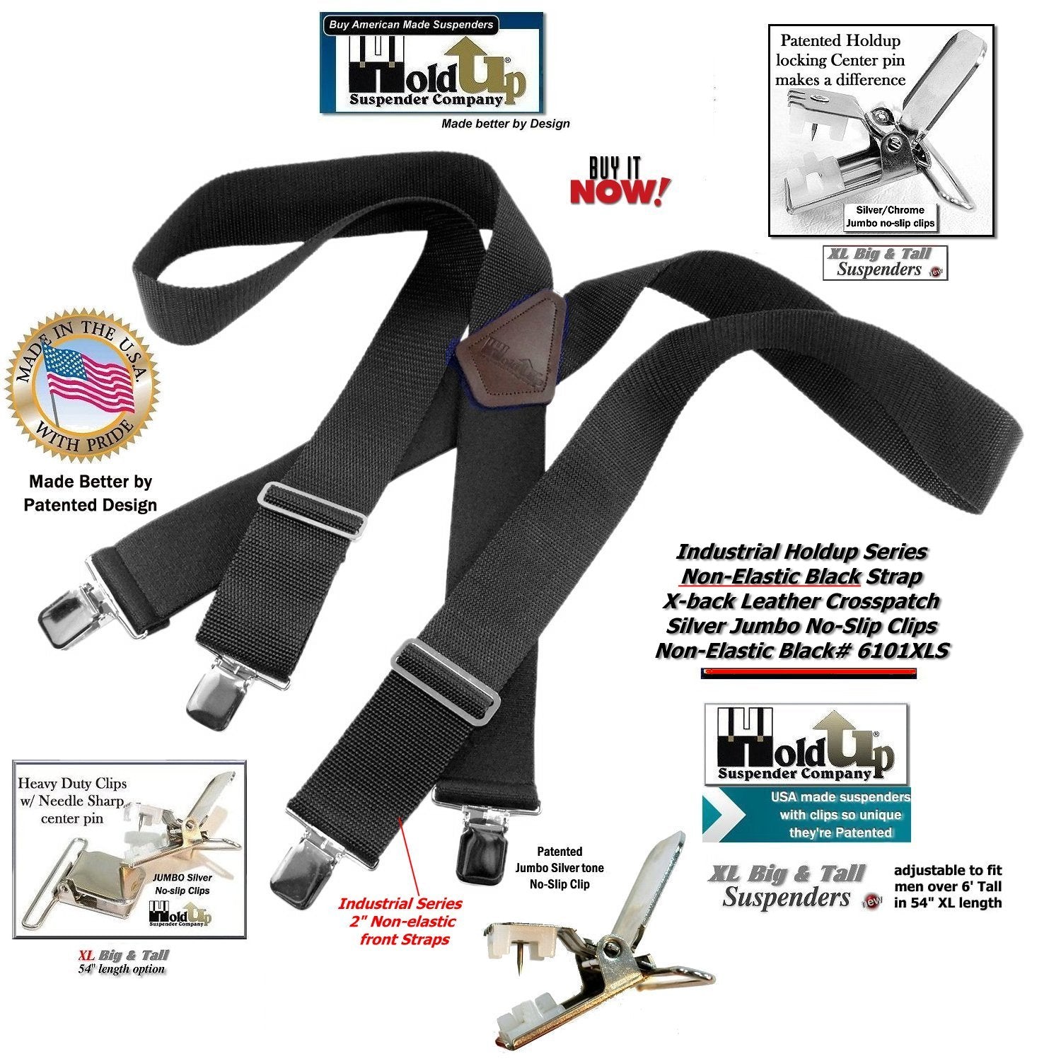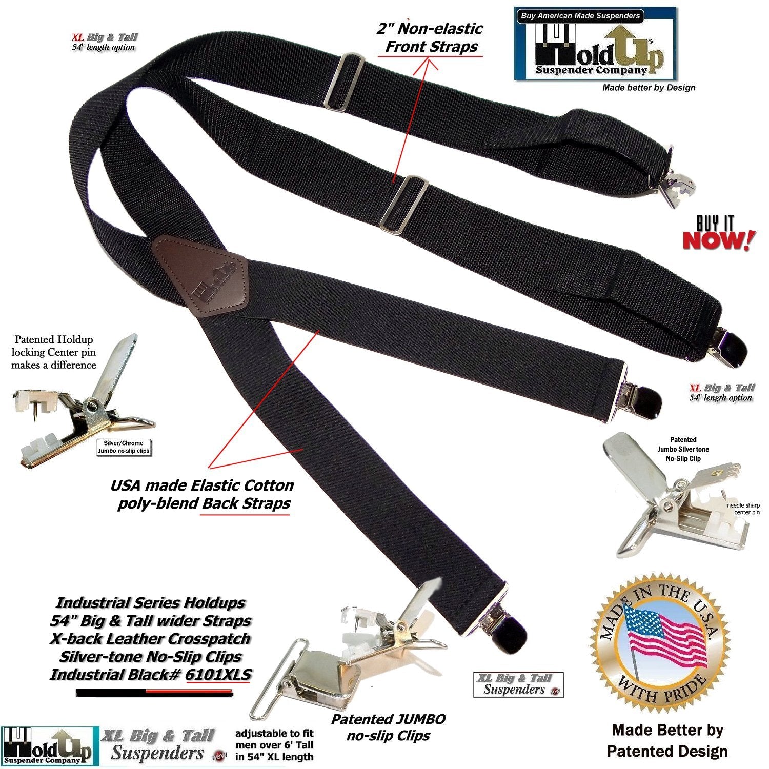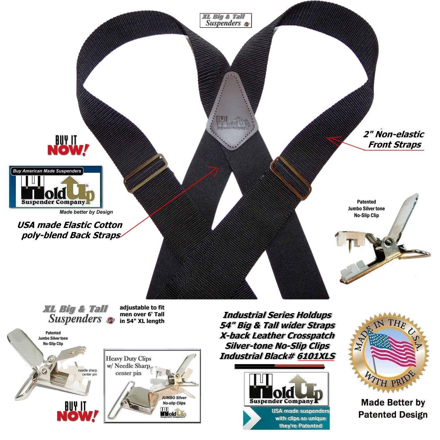 This lineup of Holdup Suspenders come in X Back only with our USA Patented Silver plated JUMBO Clips. These are the best heavy duty working man's clip-on suspenders on the market.