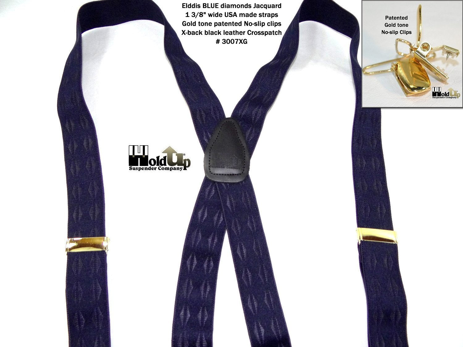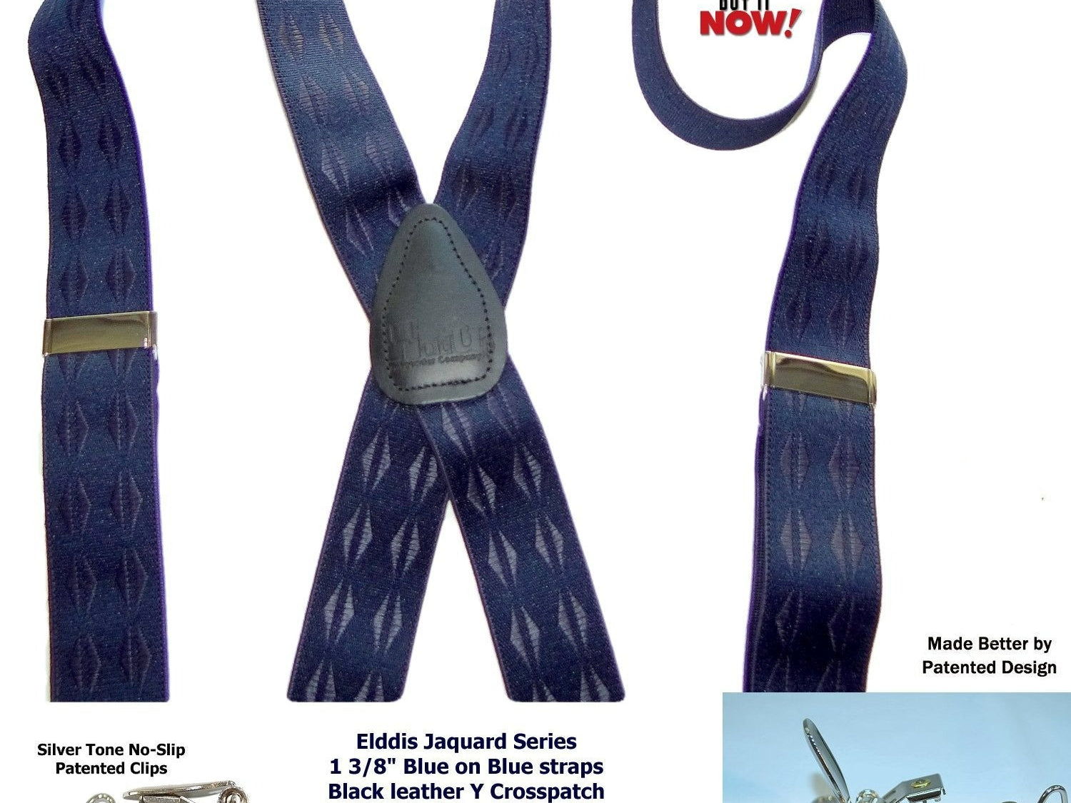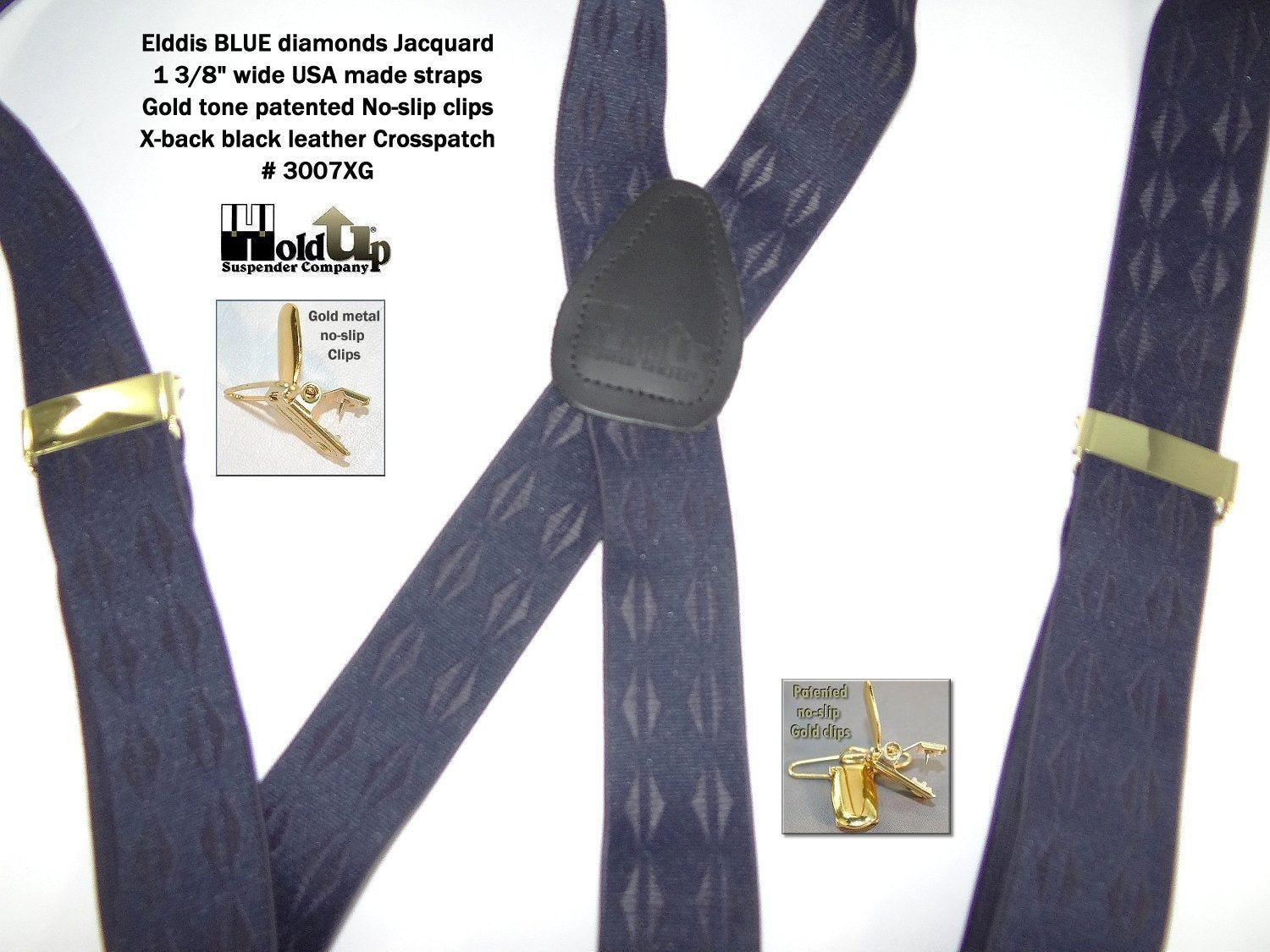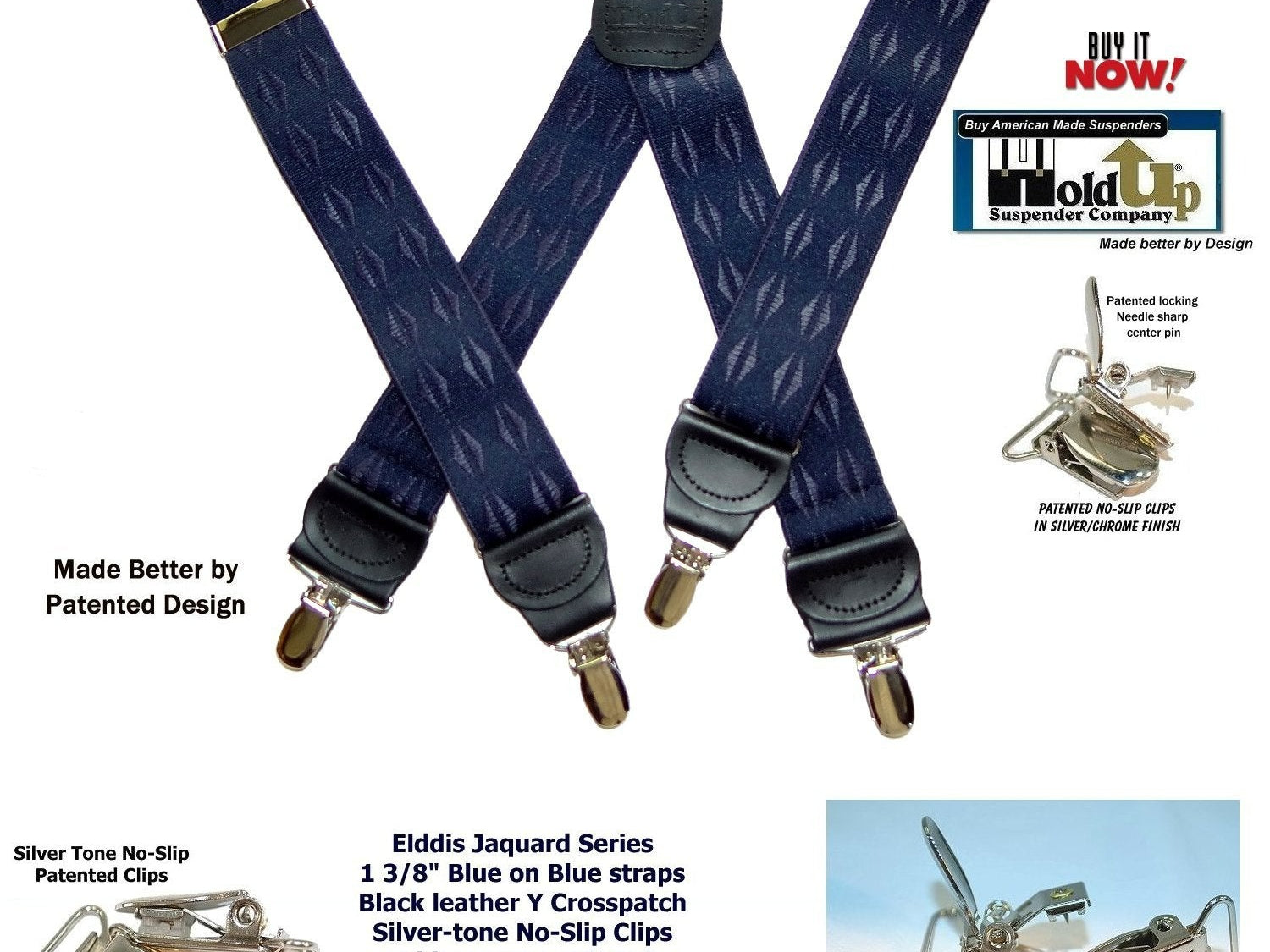Exclusive Jacquard Color on complimentary color elastic fabric jacquard weaves set these Holdup brand suspenders apart from other cheaper made China imports!  Many models of Designer Series Holdups are discounted 50% while supply lasts.