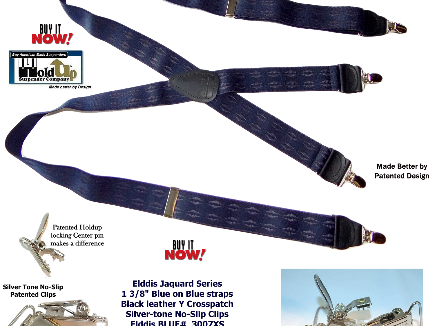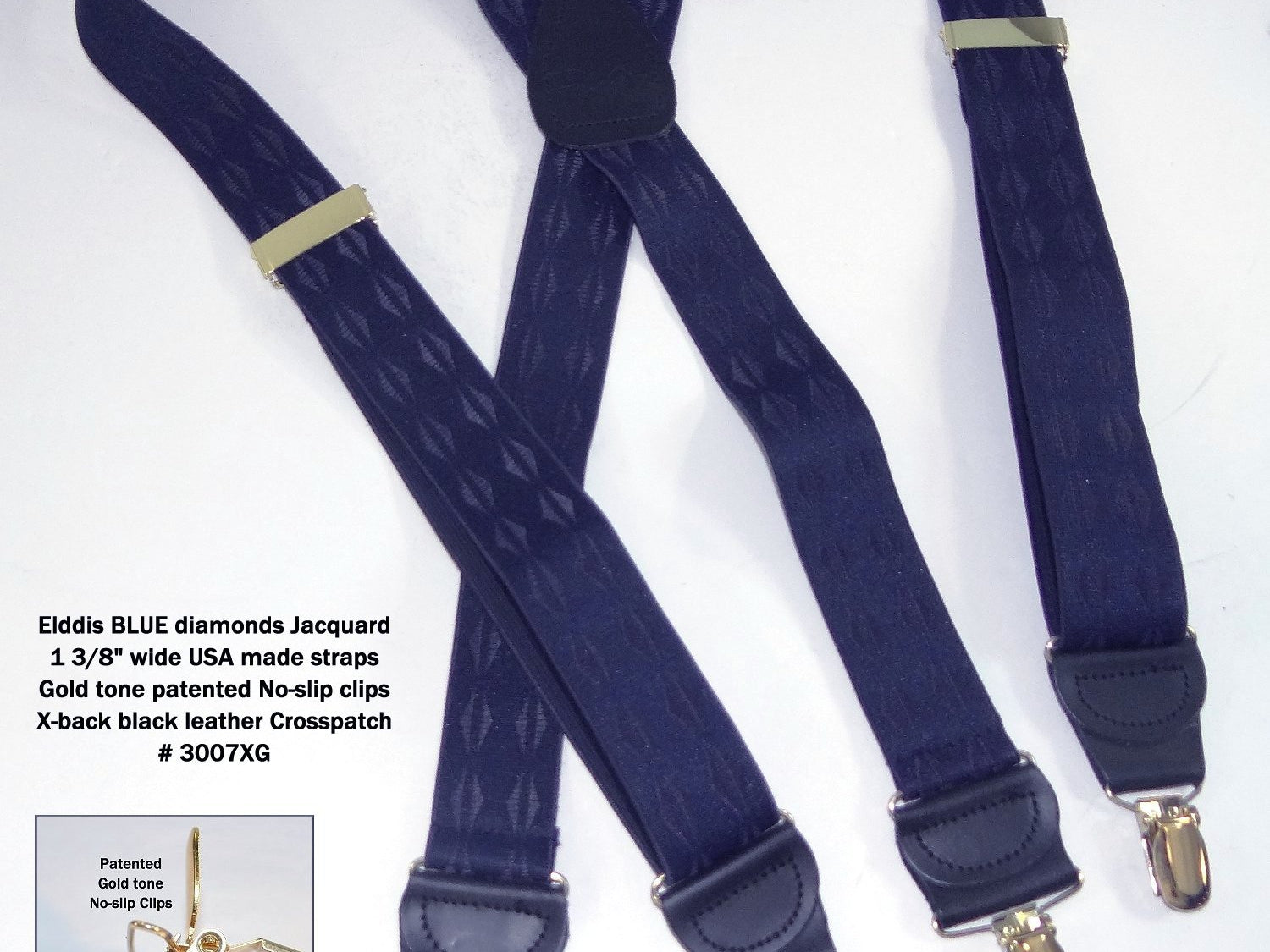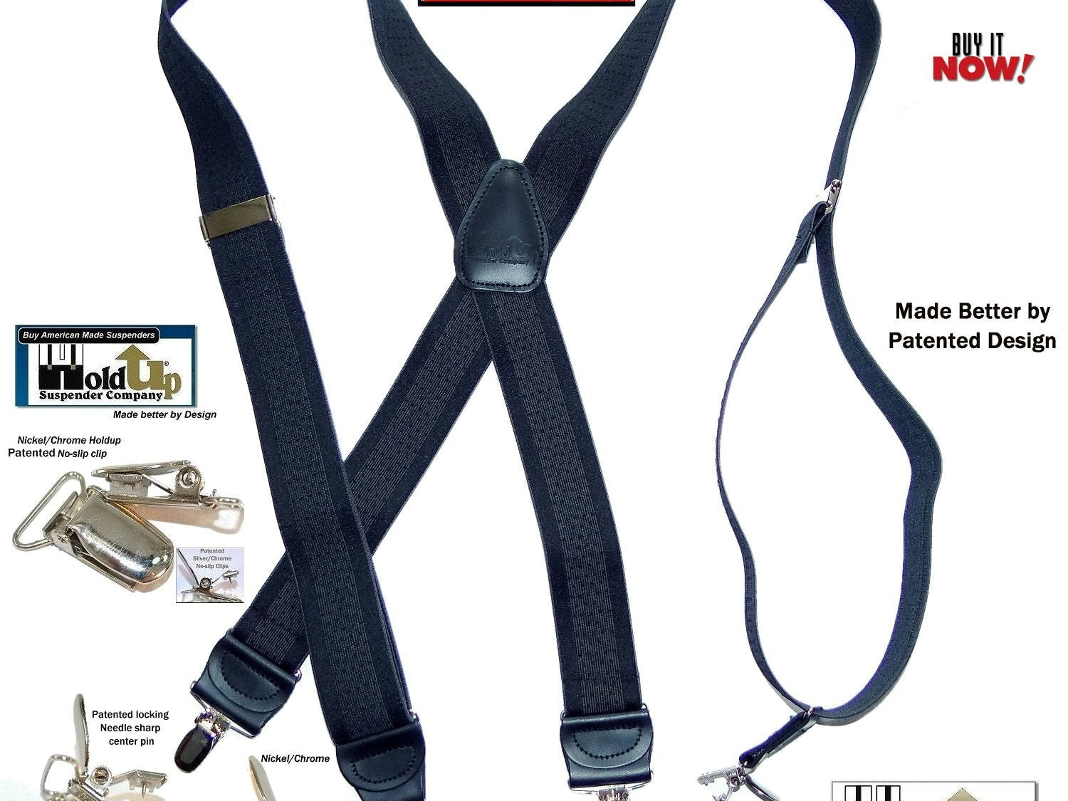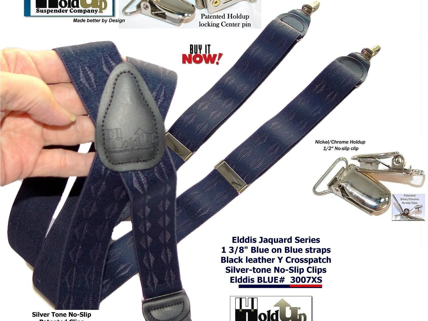 Exclusive Jacquard Color on complimentary color elastic fabric jacquard weaves set these Holdup brand suspenders apart from other cheaper made China imports!  Many models of Designer Series Holdups are discounted 50% while supply lasts.