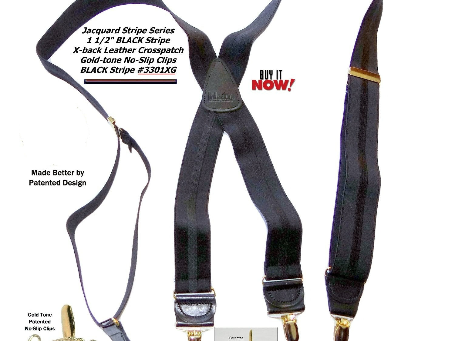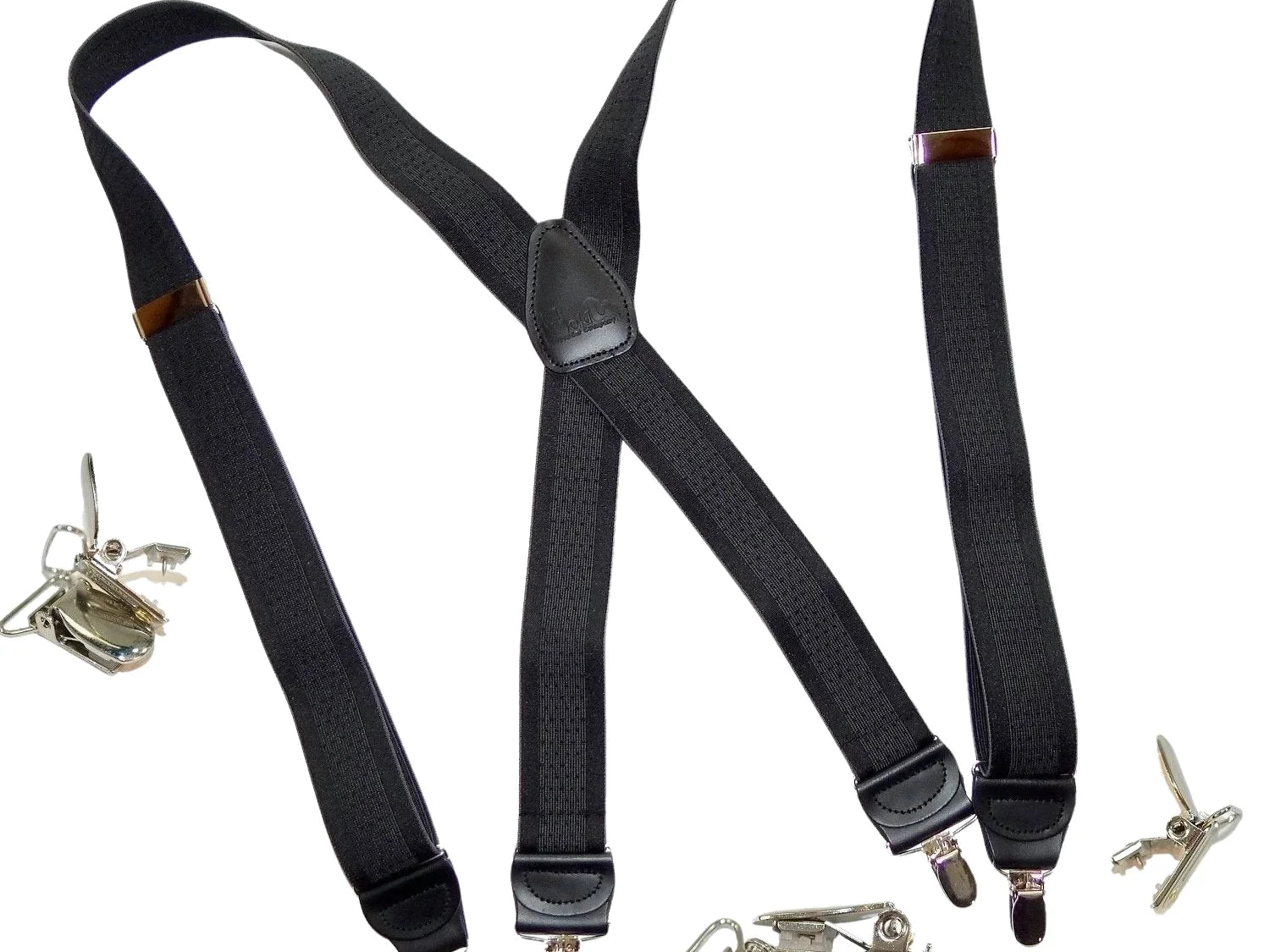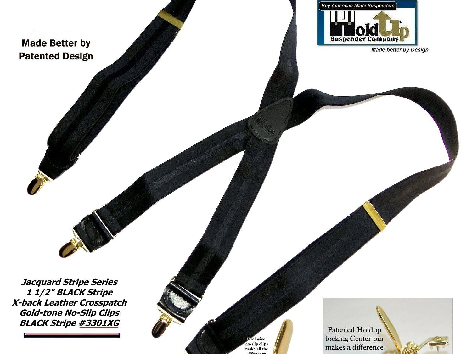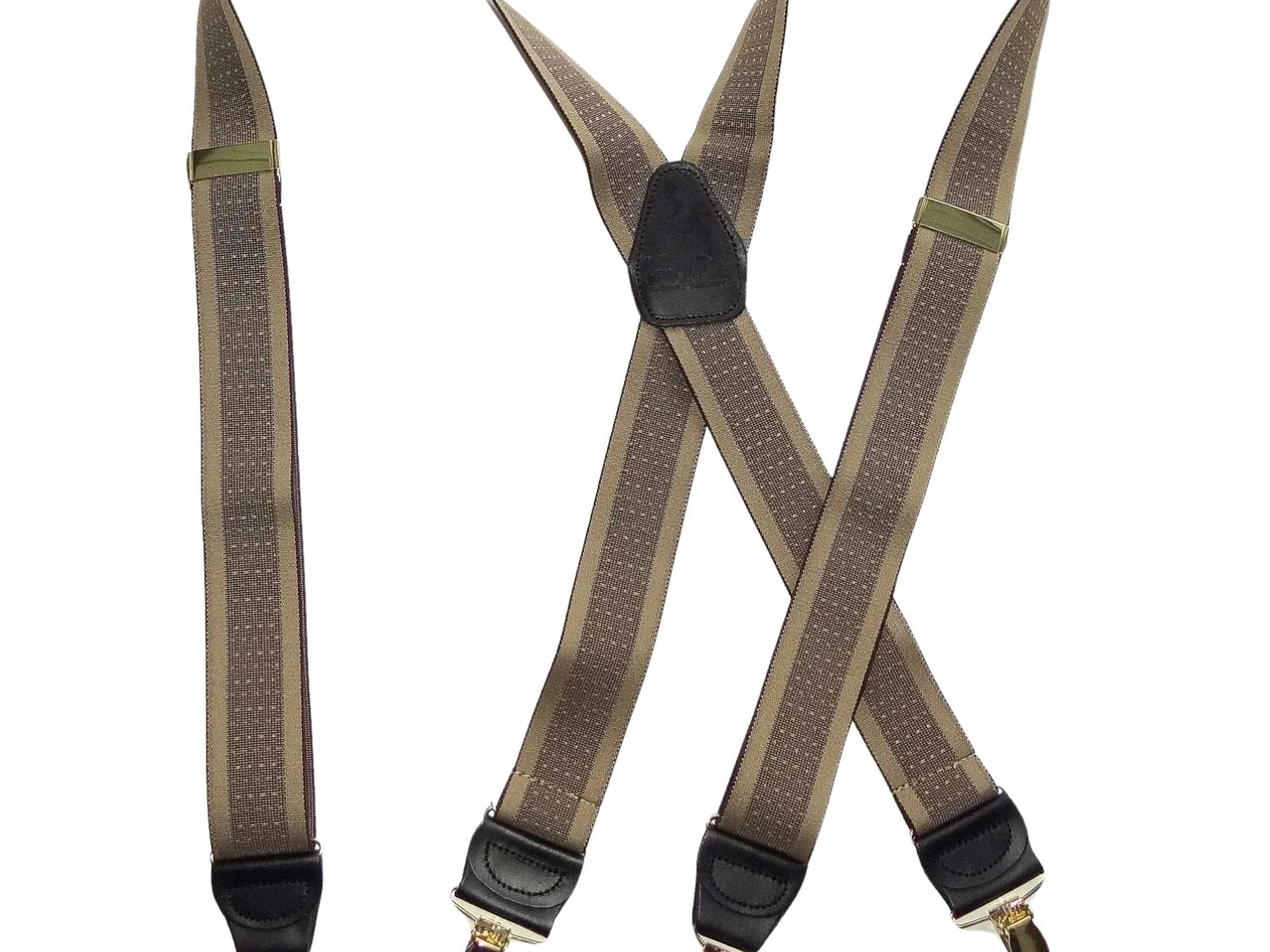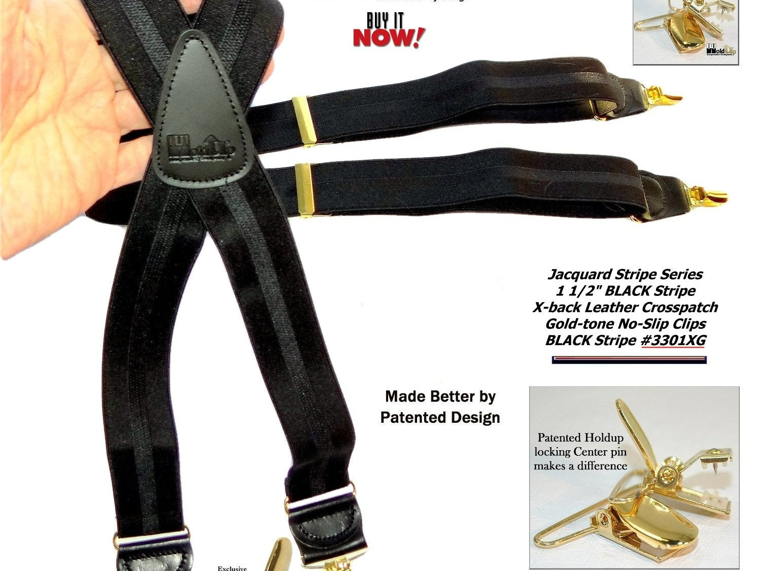 Holdup Suspender Company introduces a Jacquard Series clip-on suspenders with customer choices of Y-back or X-back crosspatch styles, or Gold or silver no-slip clip metallic finishes. These solid complementary tone on tone colorful jacquard weave suspenders. Black leather tapered no-slip clip holders and crosspatch embossed with Holdup logo make these a great choice for a tasteful office and party suspender. Choose from blended Cordovan Burgundy colors, Taupe and light tans to a Onyx black on black jacquard weave pattern. Click on color choices sold here. Now on sale here and you can purchase using your PayPal or Amazon account or Debit card and get free Freight offer at checkout.