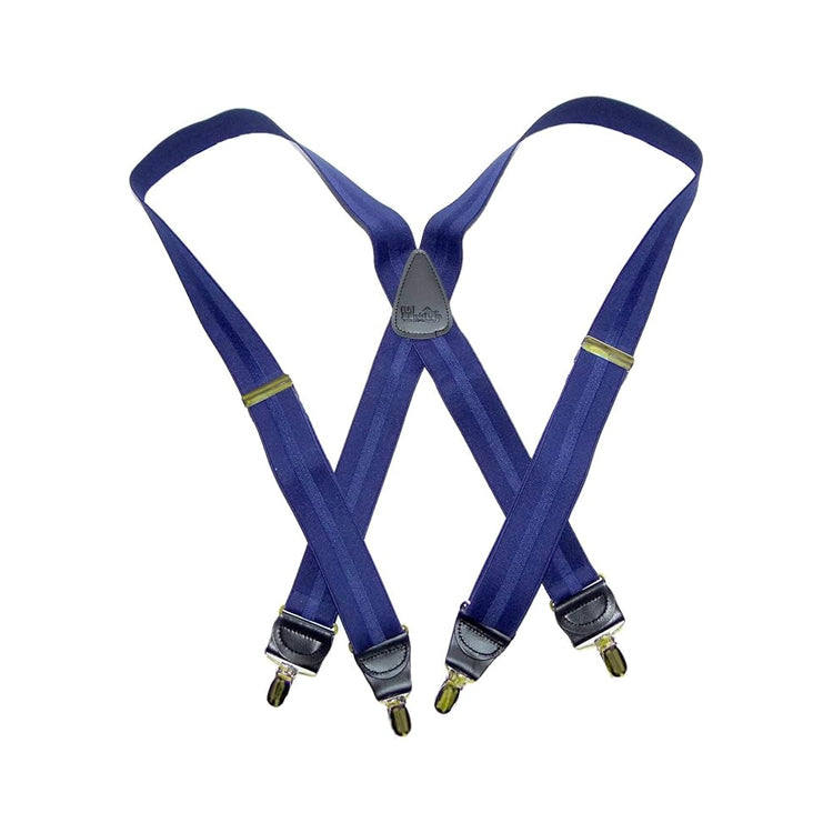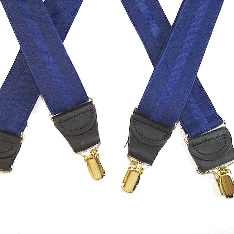 Exclusive Holdup Suspender Company colorful tone-on-tone jacquard weaves used on these 5 single clip color models have a matching color Stripe weave creating the stripe pattern shown in detail photo. We also offer 1 1/2" wide flat finished striped Holdups with colorfast died stripes in 3 contrasting striped choices.