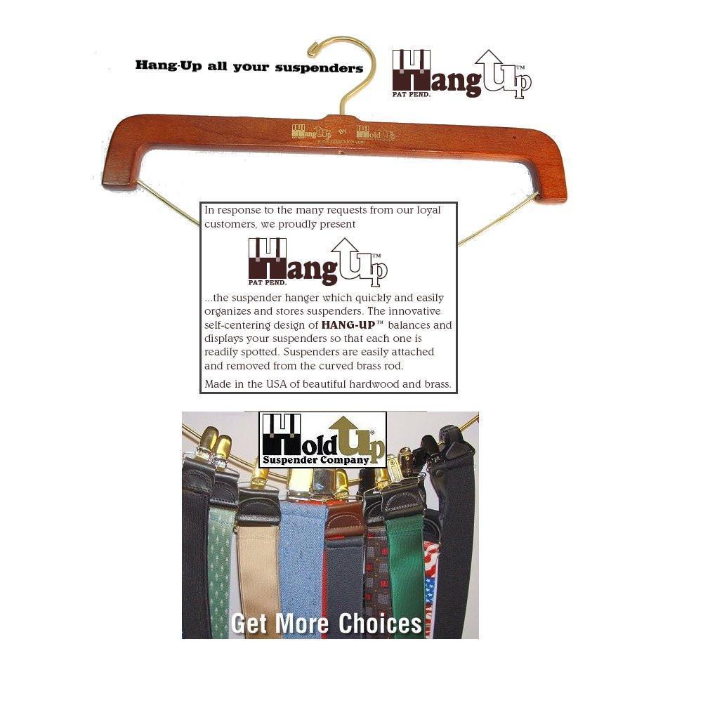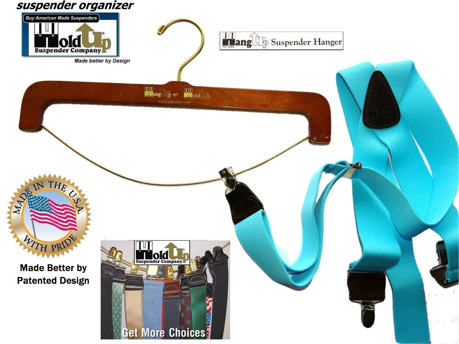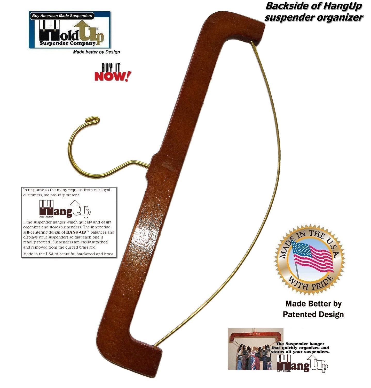 - Easily organize and display your suspender collection with the Hang-Up USA patented suspender hanger in wood and brass