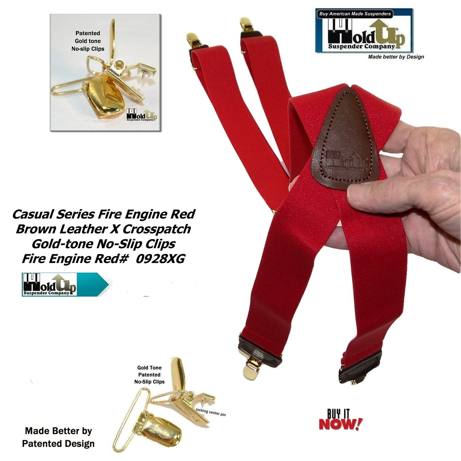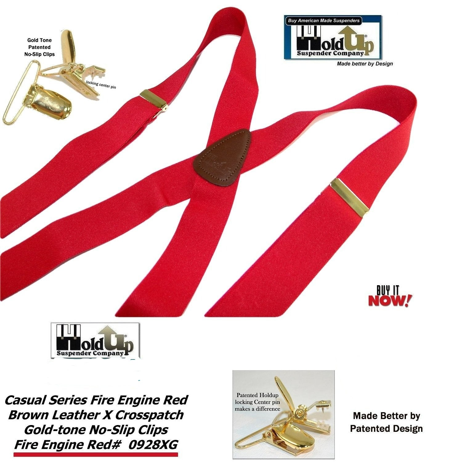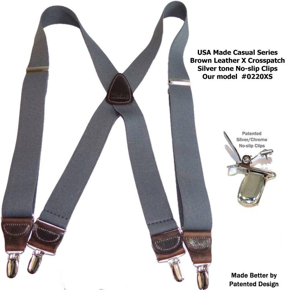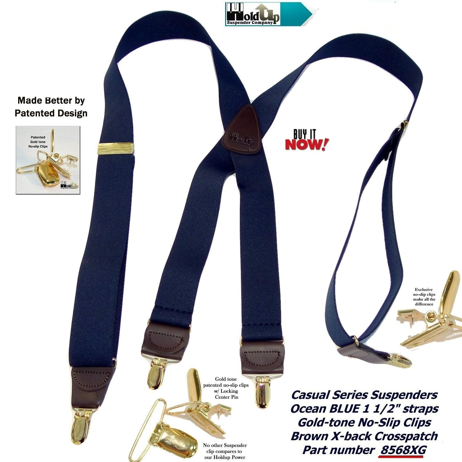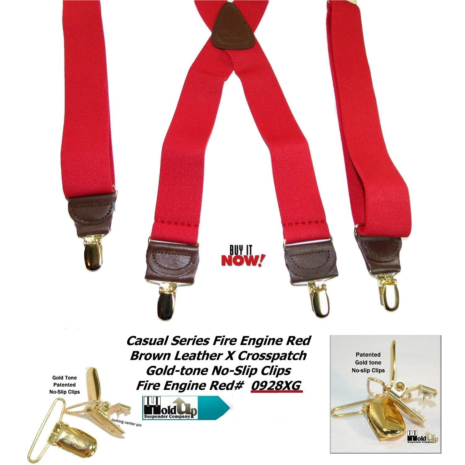 Our casual finger clip series Holdup Suspenders are all about choices. You get to choose from course weave elastic washable poly blend fabric colors. These casual series Holdups come in either X-Back or Y-Back styles with brown leather crosspatch embossed with our Holdup logo. Then you choose silver or gold finished no-slip metal clips and matching length adjusters. Securely Order your favorite color, back style preference and clip polished finish color options from our new Web shop collection of Casual Series Holdup Suspenders. Pay using your Amazon or PayPal account using your preferred credit/Debit Card with Free Freight option at checkout.