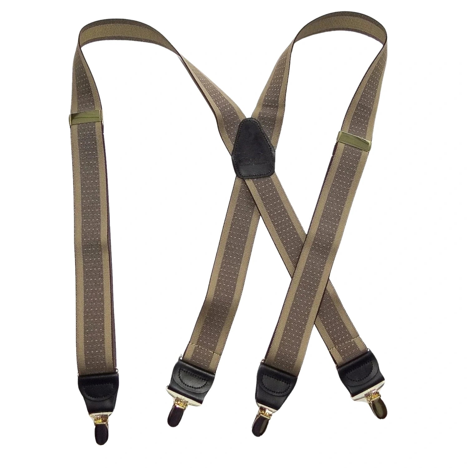 Holdup Suspender Company introduces a Jacquard Series clip-on suspenders with customer choices of Y-back or X-back crosspatch styles, or Gold or silver no-slip clip metallic finishes. These solid complementary tone on tone colorful jacquard weave suspenders. Black leather tapered no-slip clip holders and crosspatch embossed with Holdup logo make these a great choice for a tasteful office and party suspender. Choose from blended Cordovan Burgundy colors, Taupe and light tans to a Onyx black on black jacquard weave pattern. Click on color choices sold here. Now on sale here and you can purchase using your PayPal or Amazon account or Debit card and get free Freight offer at checkout.