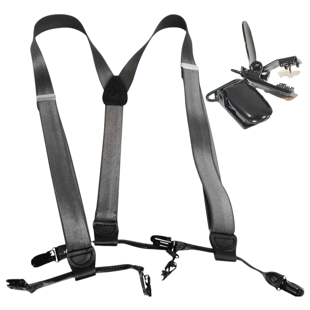 Hold-Ups Charcoal Grey 1-1/2" Wide Suspenders X-back with Silver-tone no-slip Clips