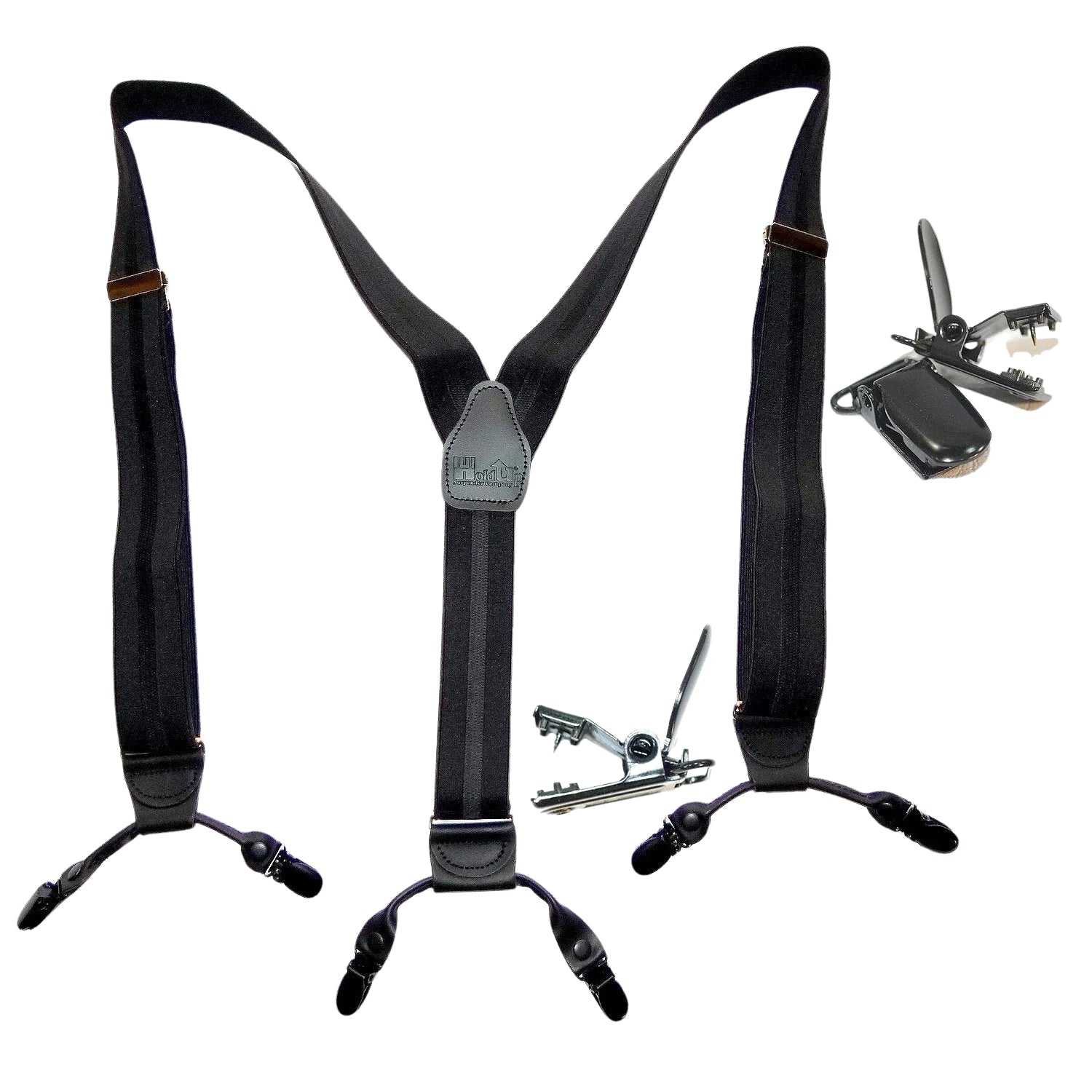 Holdup XL Corporate Series Black Sapphire Dual Clip Double-Ups style Suspenders with patented No-slip black Clips