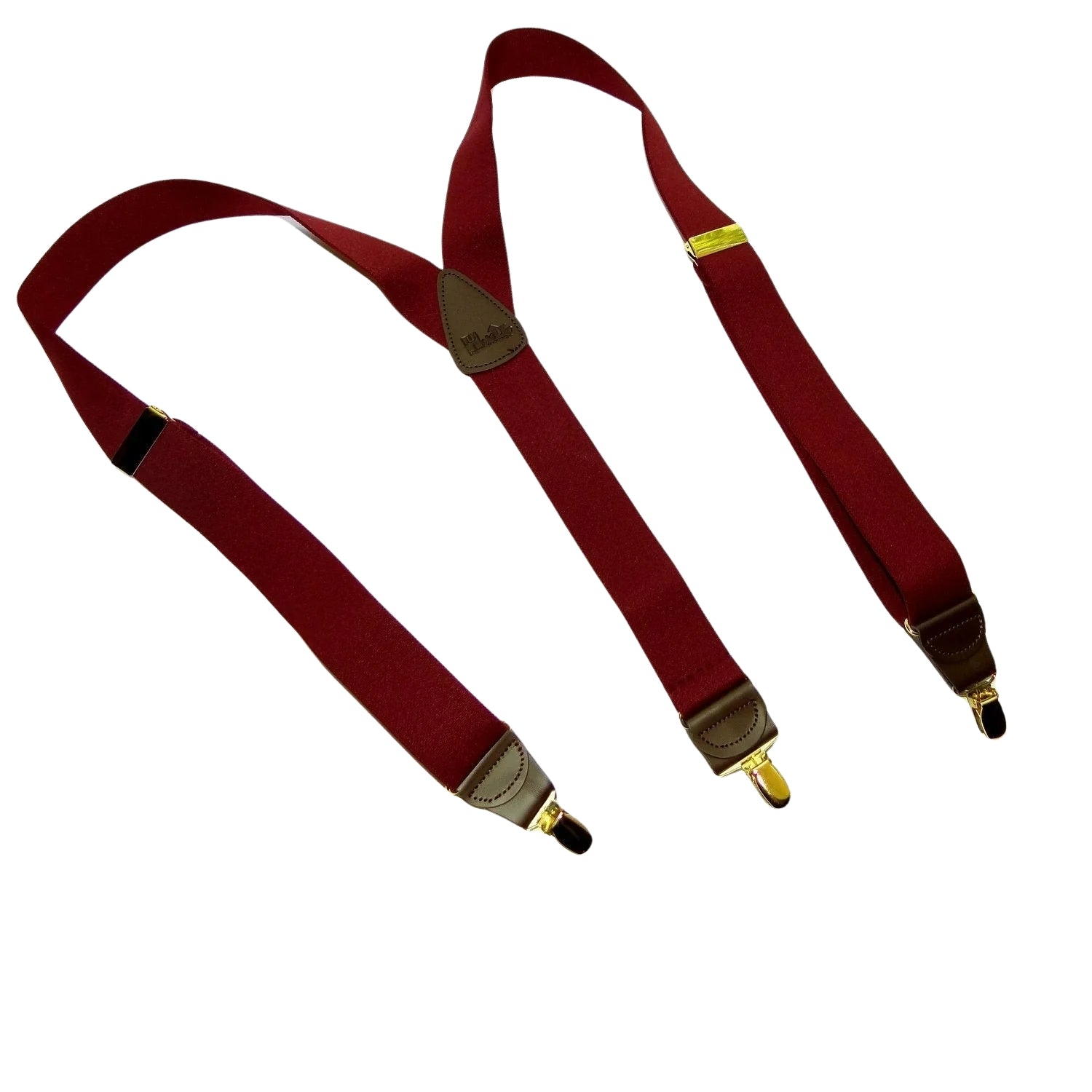 Holdup Y-back Casual Series Suspenders in deep Merlot Burgundy color with USA Patented No-slip Gold-tone clips