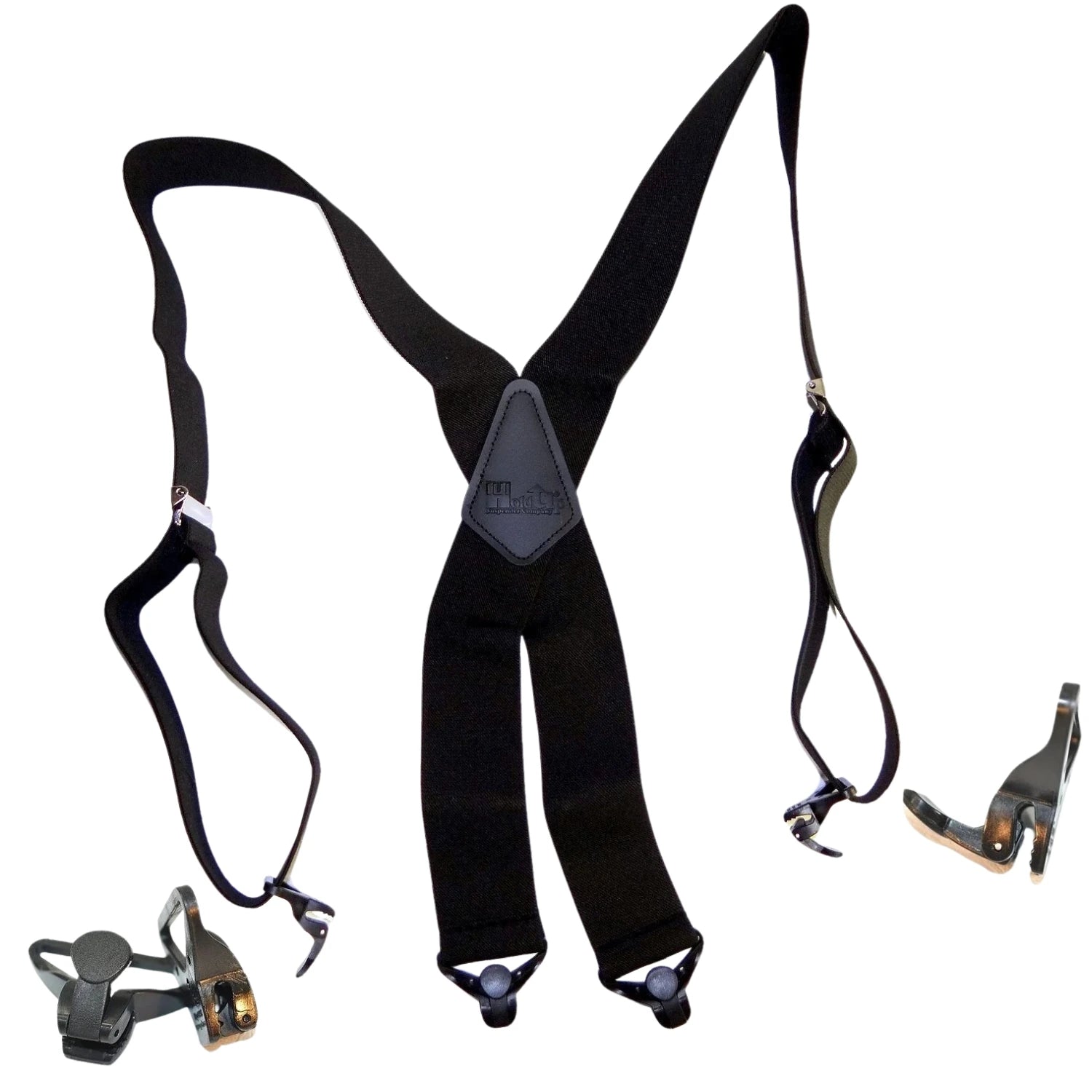 Holdup XL All Black Ski Ups X-back HD Suspenders with USA Patented Jumbo Gripper Clasps