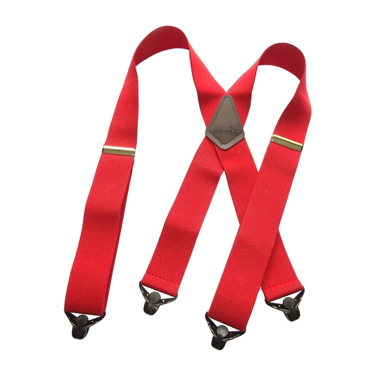 Heavy Duty Logger RED 2" Wide Holdup X-back Suspenders with USA Patented Jumbo Silver-tone No-Slip Clips
