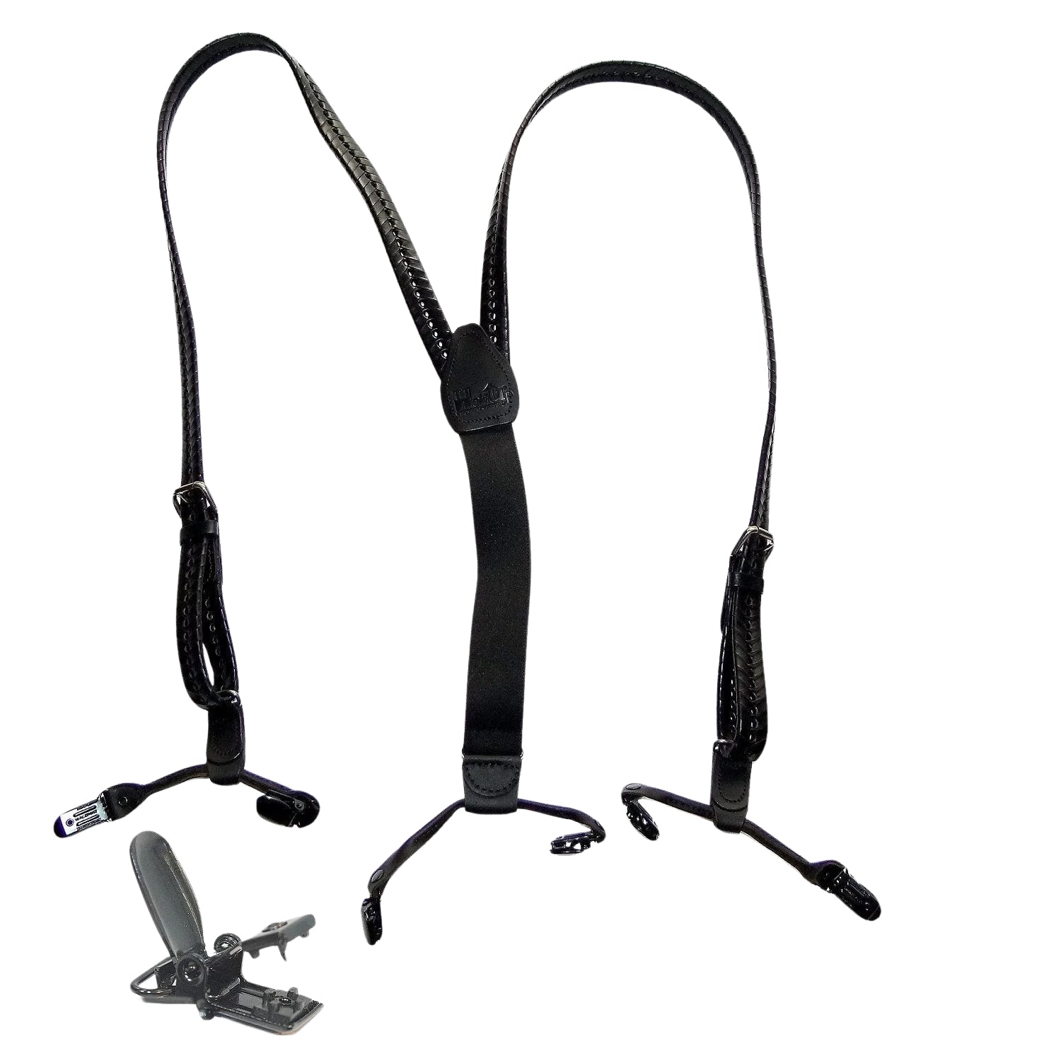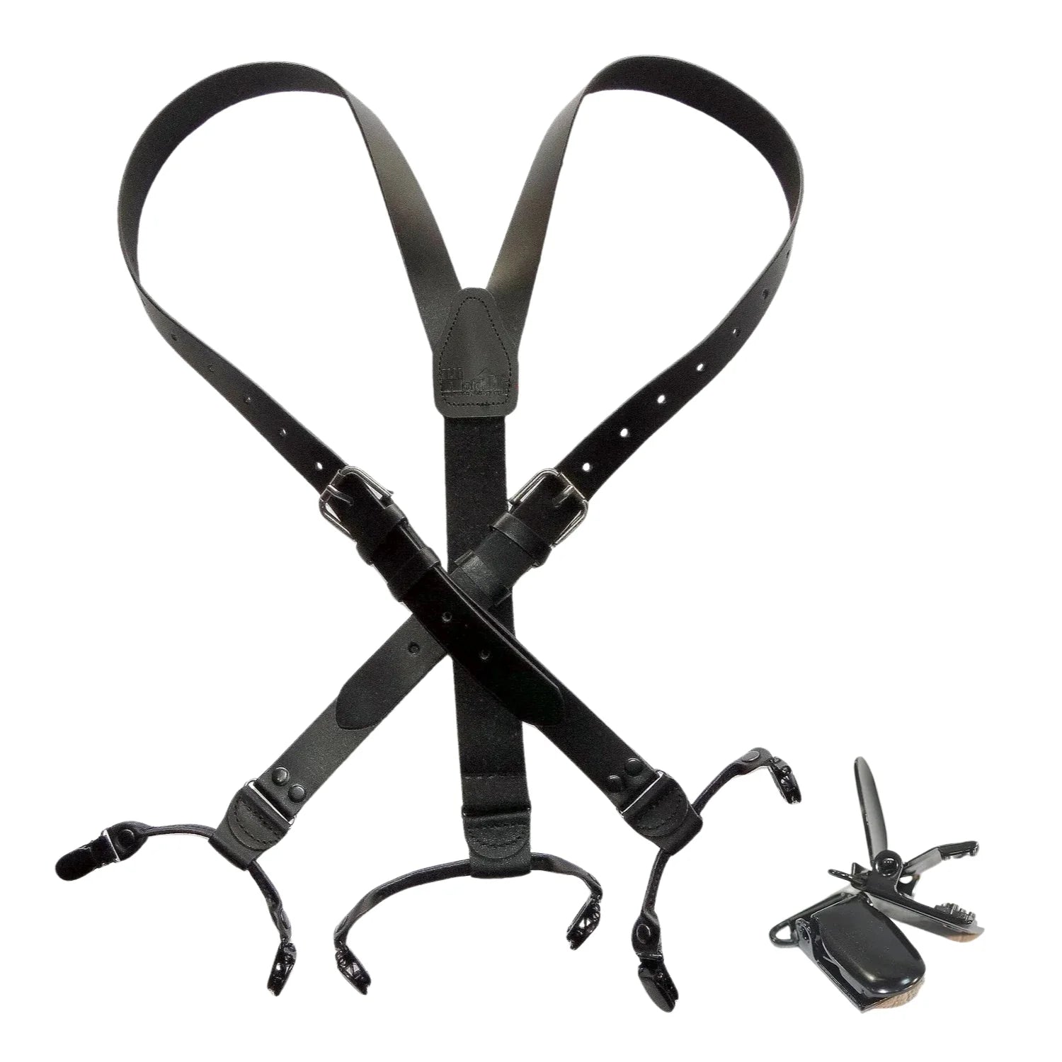 Hold-Ups Black Braided Leather Suspenders in Double-Up style with black No-slip clips