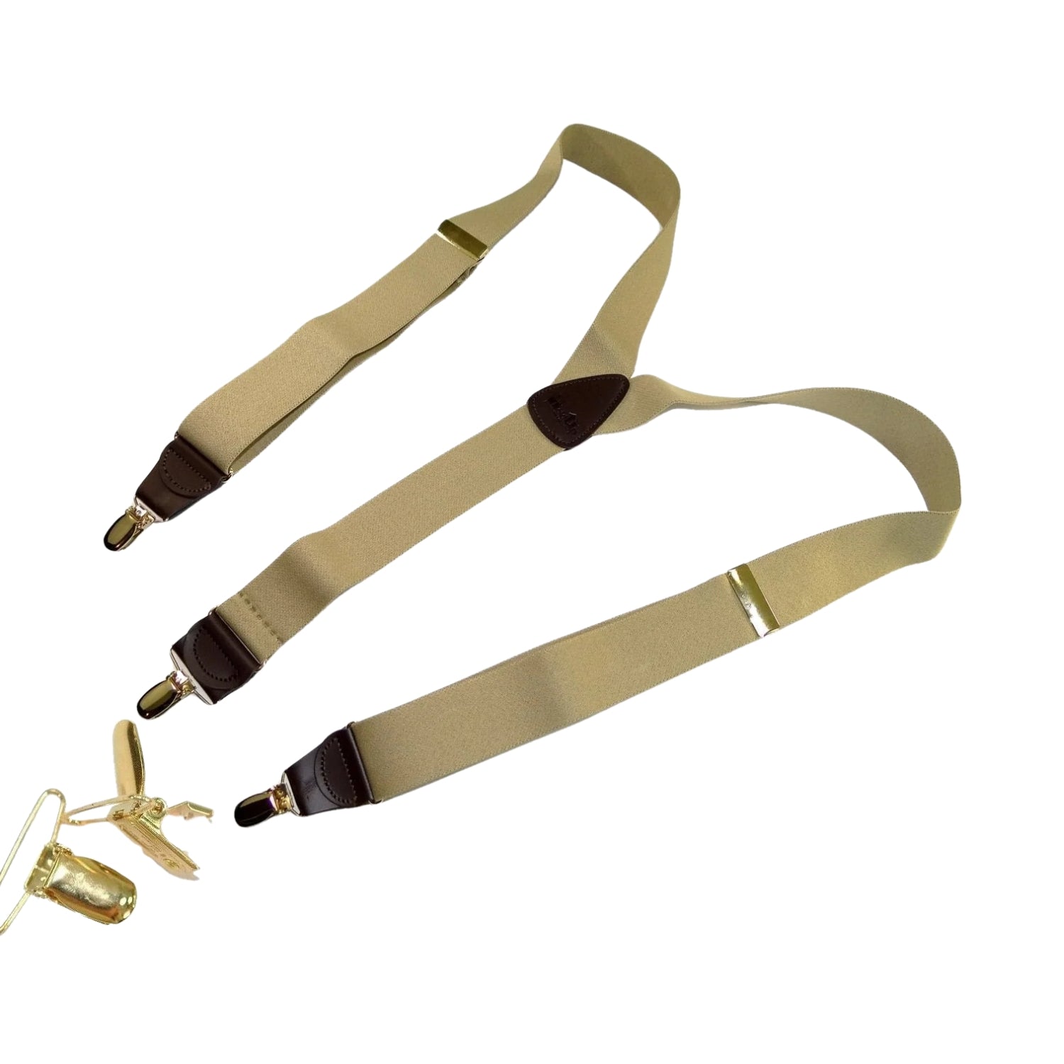 Holdup Casual Series Sand Dunes Tan Y-back Suspenders with USA Patented Gold-tone No-Slip Clips