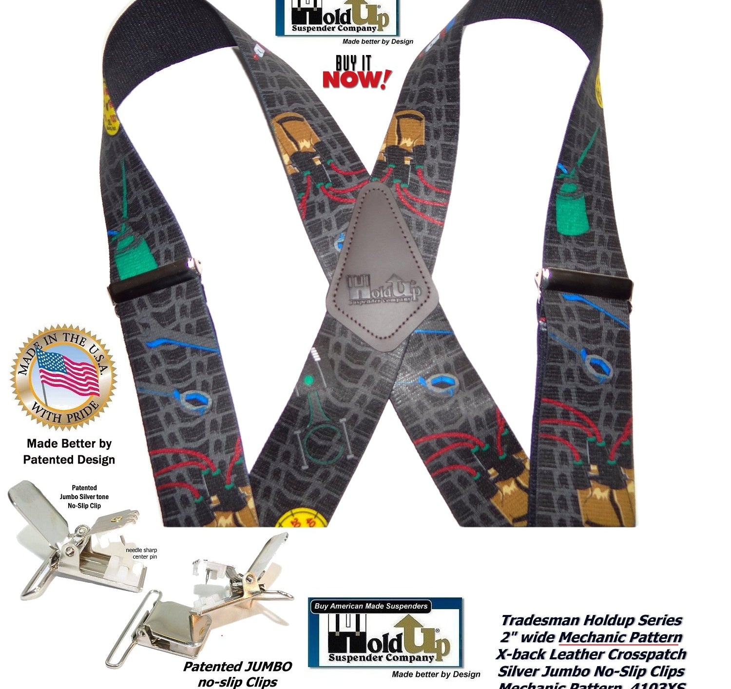 Holdup Suspender Company has been selling our suspenders online and in retail stores since 1997 and here are some top sellers over the years.Ā We offer the largest assortment of quality suspenders for everyday wear, wide work suspenders to dress suspenders for special occasions and formal events.Ā HoldUpĀ® suspenders feature our USA patented āno-slipāĀ® clip that is guaranteed to never, ever slip off your pants.Ā OurĀ suspenders are made from high quality elastic fabrics in a wide array of solid colors, tasteful patternsĀ and a variety of fabric finishes and strap widths. We now also makeĀ clip-on suspenders for kids, teens and women.
