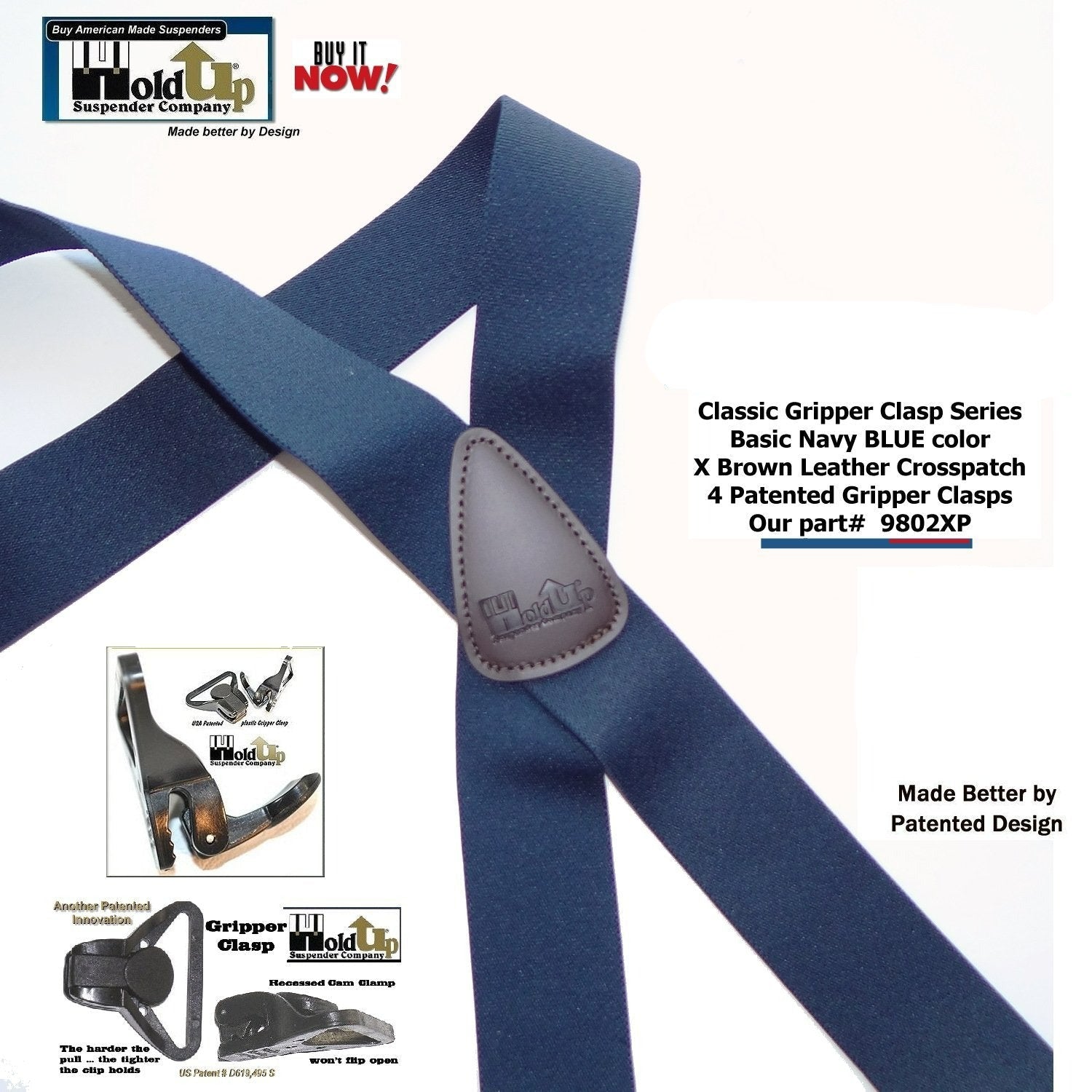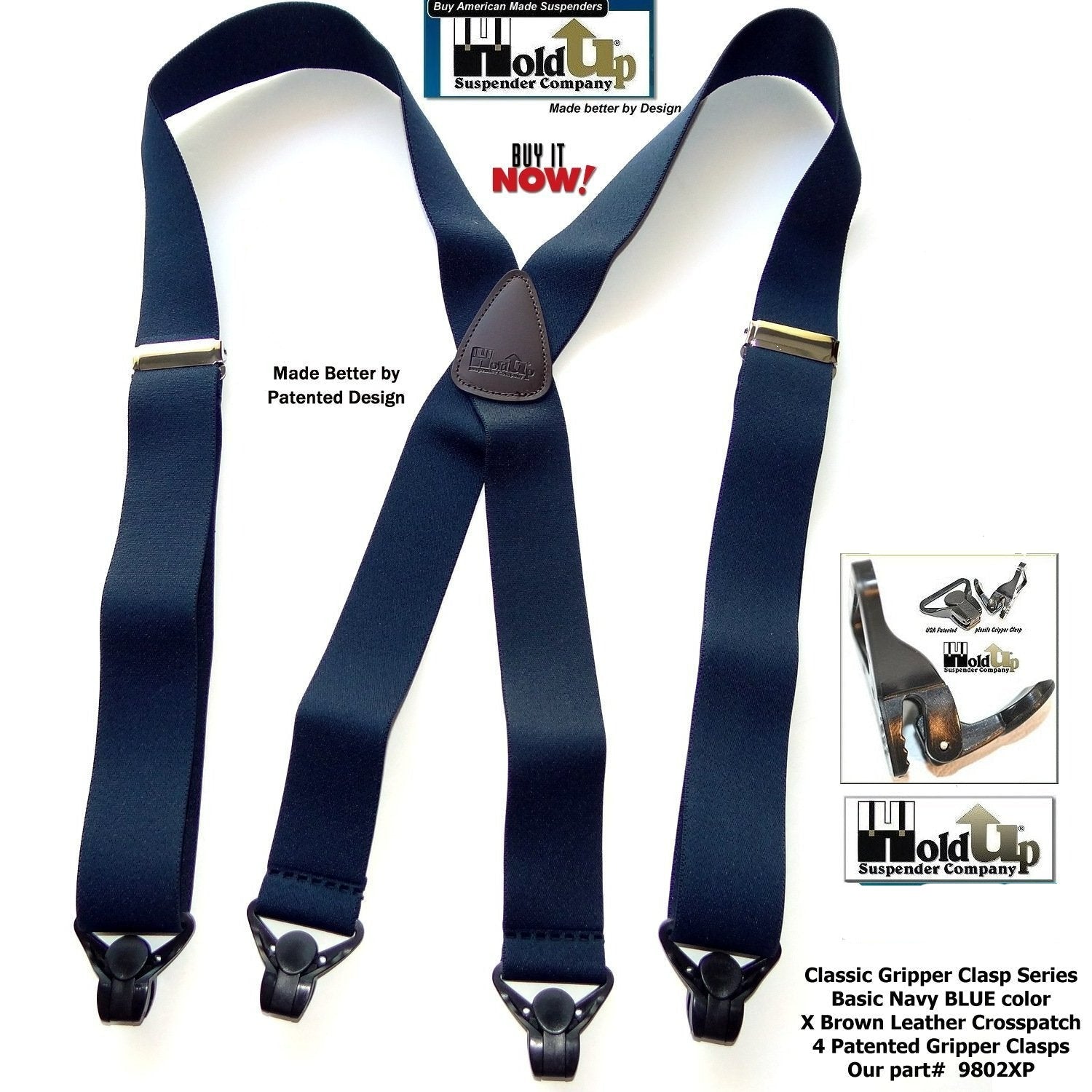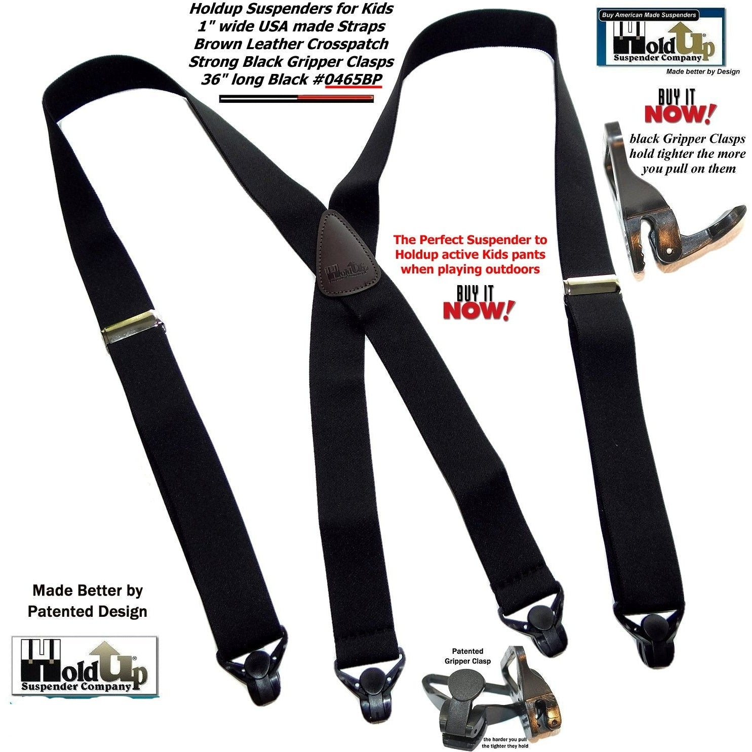 We also offer shorter 42" length Ski-Ups for teens in 1 1/4 inch wide Red, Black or Blue with black super strong USA Patented Gripper Clasps, which also make the perfect basic pant suspender for teens with X-back crosspatch embossed with our Trademarked Holdup logo.