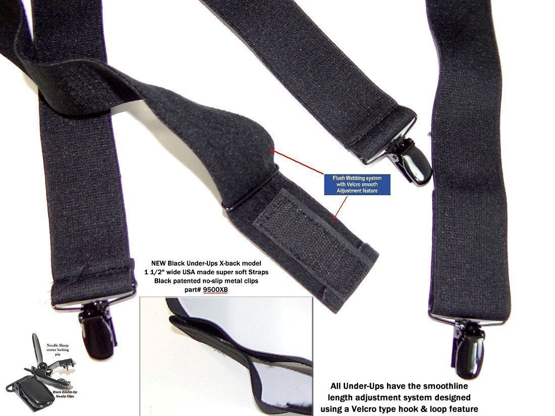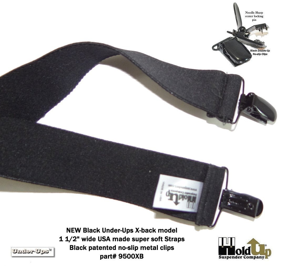 US made Black 1 1/2" wide all black Under-Ups with X-back style worn under any loose fitting shirt with Pants or Shorts in total comfort.Â