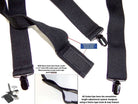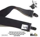 All Black Hidden Undergarment Suspenders 1 1/2" wide 48"long, X-back style with No-slip Clips