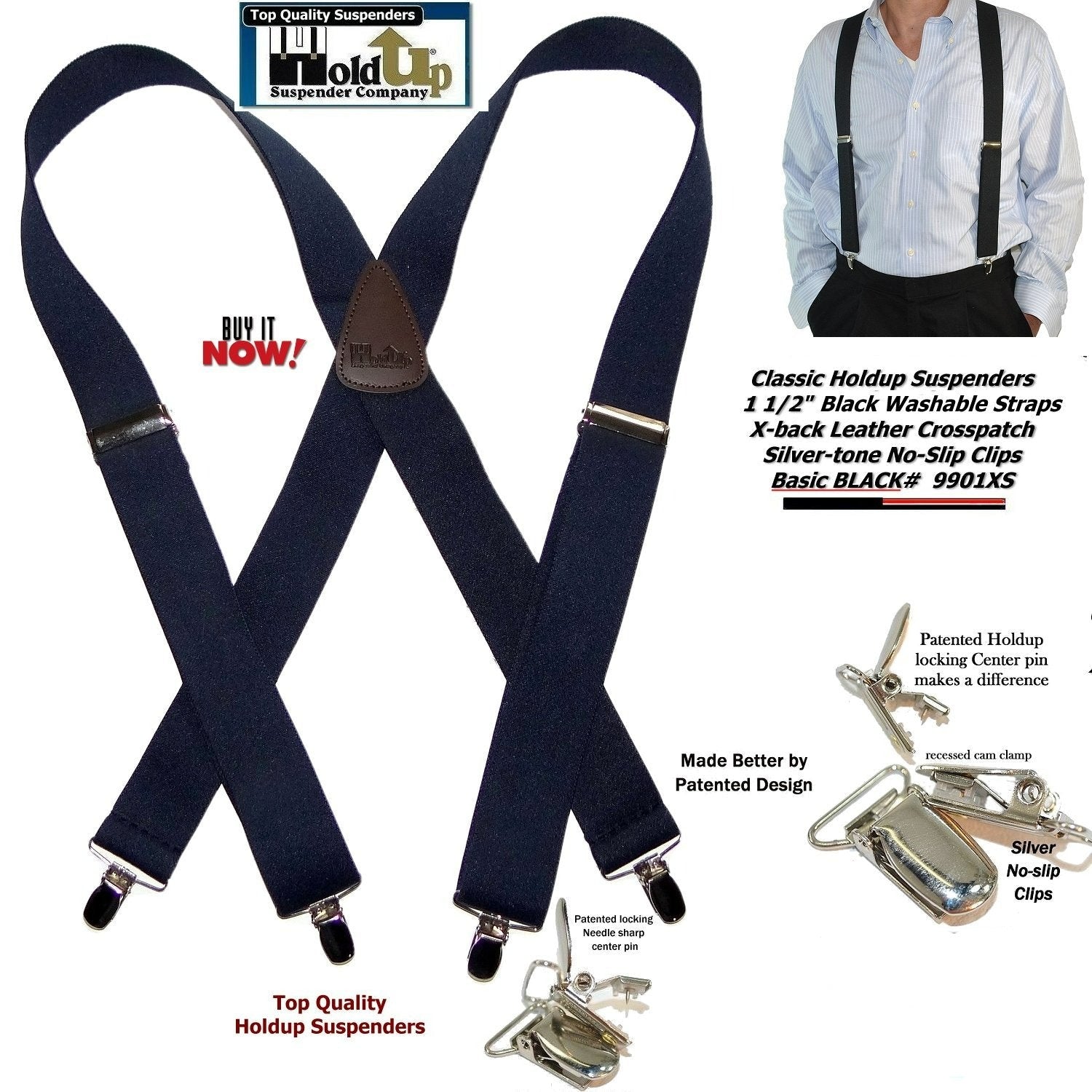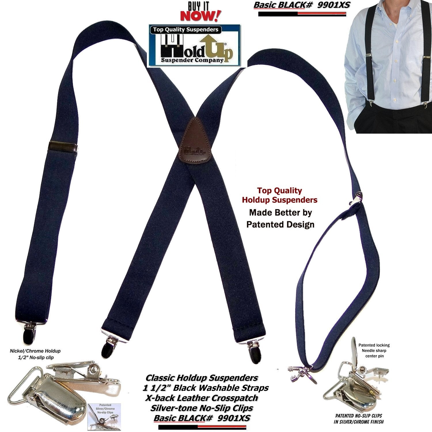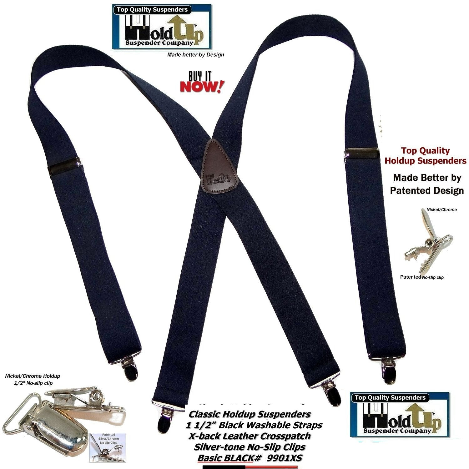 Holdup Suspender Brand Classic X-back Black Suspenders with no-slip USA Patented clips