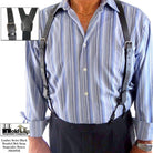American made Black Belt Strap Style Leather Y-back fancy narrow Suspenders with black no-slip clips and tapered dual clip tab holders.