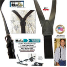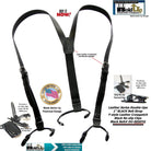 This western type Black leather belt strap suspender model has black tapered leather button-on type clip tab holders and they attach at the top of your waistband, without causing waistband rollover common with button-on suspenders braces. American made black clip-on BELT STRAP STYLE Leather Double-Ups by Holdup Suspender Company are made in the USA with genuine Bonded leather 1 inch wide straps. Securely Order these Black Leather Belt Strap style Double-Ups suspender now offered in our newest webshop where you pay using your Amazon or PayPal account and choose the FREE Freight option at checkout. We know you'll love these stylish narrow Leather strap Holdups and back this up with a no-questions-asked 30 day money back guarantee.
