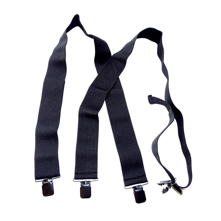 - 4 patented Jumbo Hold-up Patented NO-SLIP metal clips with needle sharp center pin on these all black wider undergarment suspenders are made for the Big & tall man seeking a soft comfort suspender to wear Under their shirt