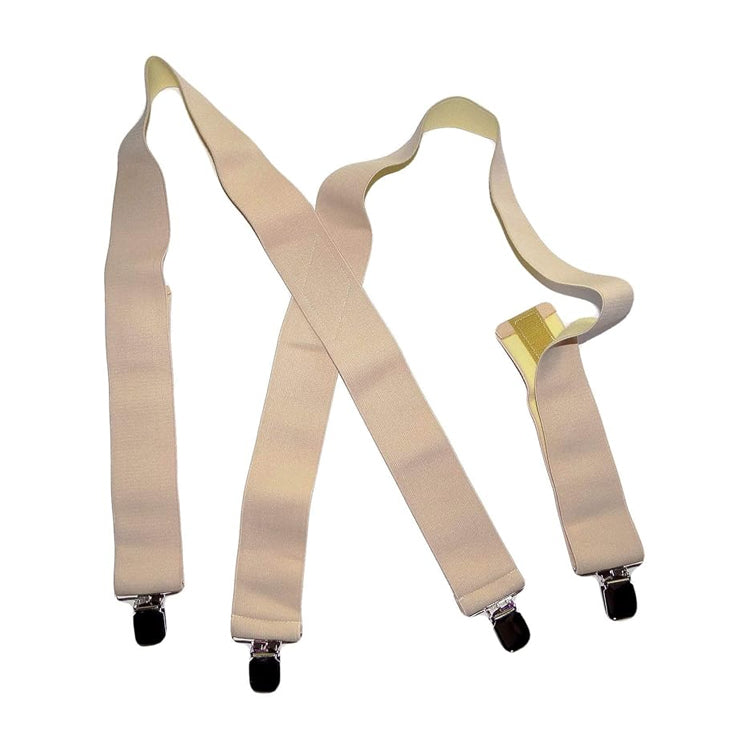 Holdup 2" Wide Undergarment Hidden Light Beige X-back Suspenders with USA Patented No-slip Silver Clips