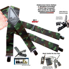 Holdup brand Woodland Camouflage pattern Hunting Suspenders with black USA Patented No-slip Clips