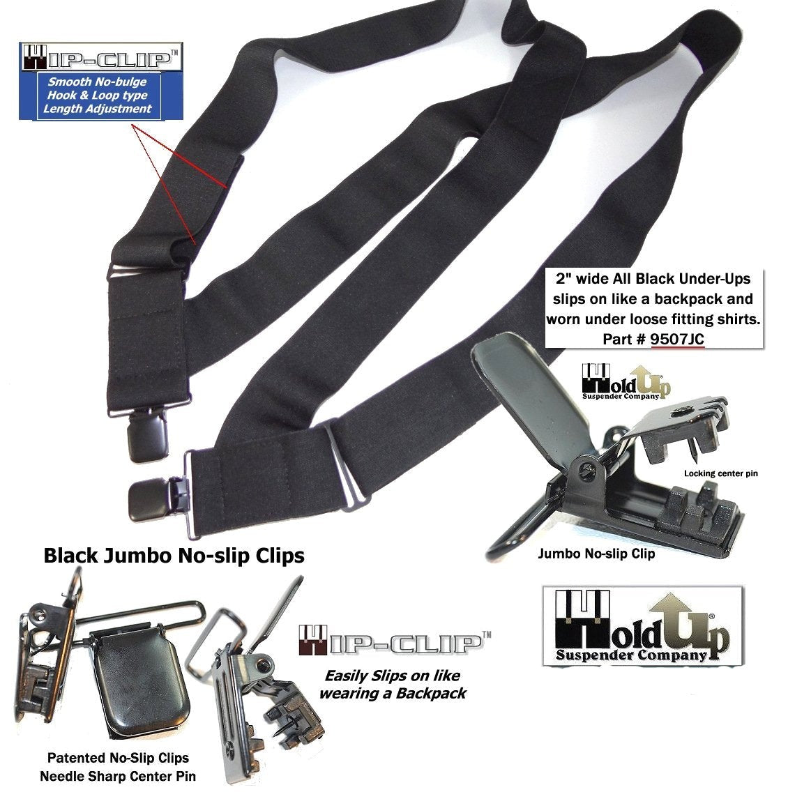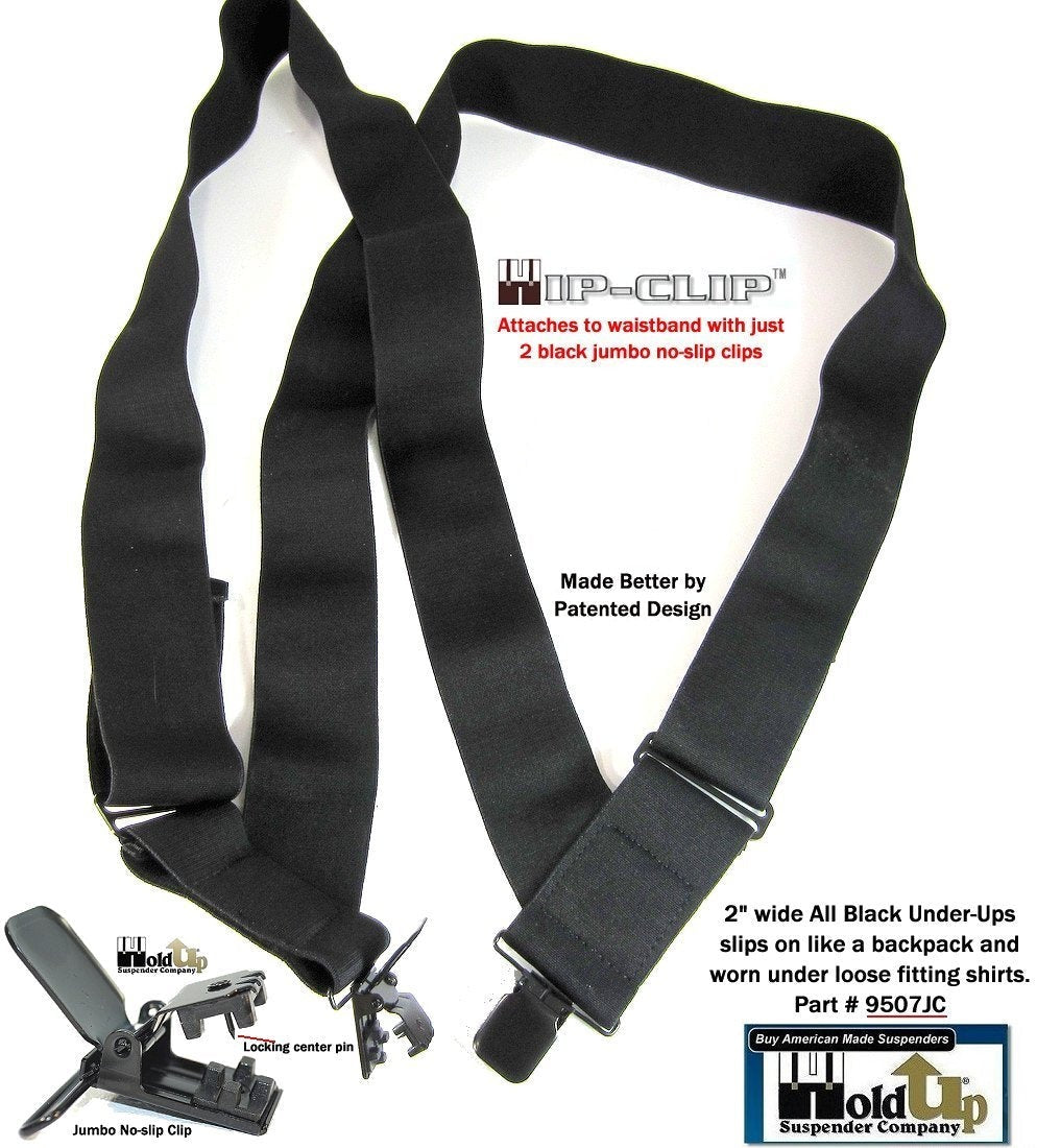 HoldUp Brand No-Slip Clip Black 2" Wide Under-Ups suspenders