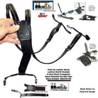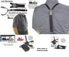 Get the real Mccoy as these have the Trademarked Holdup logo is embossed in the Y-back double stitched black leather crosspatch and the 1 1/4" wide elastic black back strap below the crosspatch cotton poly-blend elastic fabric for a more comfortable fit. The braided leather straps are 3/4" wide and 48" long so they adjust with antique silver tone buckle to easily fit men to 6 feet tall.. Buy these black braided leather Holdup brand suspenders from our Amazon shop. We also have them in brown leather braid style for the same price. Buy using your Amazon or PayPal account and get free freight offer at secure checkout.