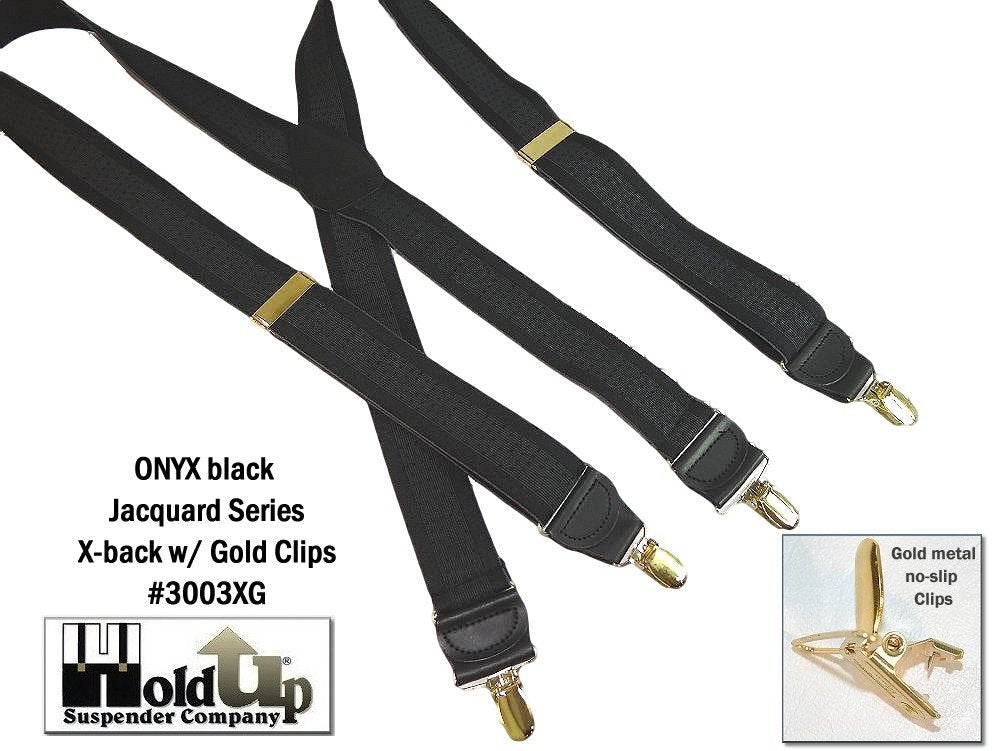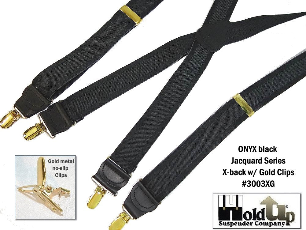 Hold-Ups Black "Onyx" Jacquard 1 1/2" wide in X-back style and USA patented No-slip Gold Clips