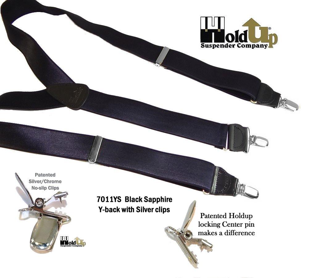 Hold-Ups Black Sapphire 1 1/2" Satin Finish Suspenders Y-Back No-slip Silver Clips