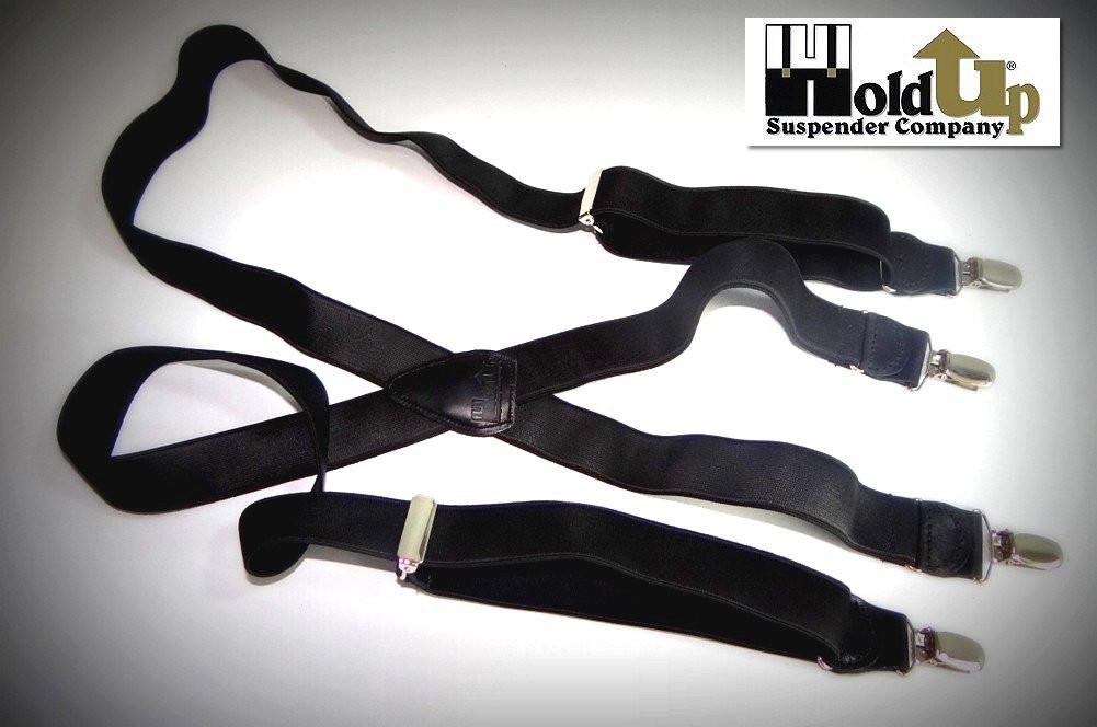 Hold-Ups Black Satin Finish 1 1/2" Wide in X-back suspenders with Patented No-slip Silver Clips