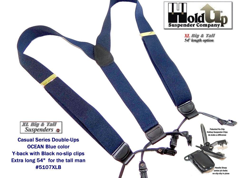- Ocean Blue XL Casual Series Double-Up style suspenders have a dense flat finish weave with patented black No-slip® Hold-Up® exclusive clips