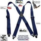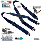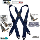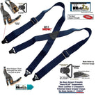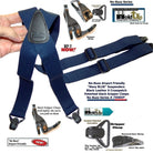 Airport Friendly No-Buzz Navy Blue X-back suspenders with patented Gripper Clasps for those who regularly pass through metal detectors