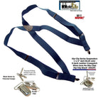 Hold-Ups Navy Blue Trucker Style Hip-clip Suspenders in 1 1/2" Width and USA Patented No-slip Clips