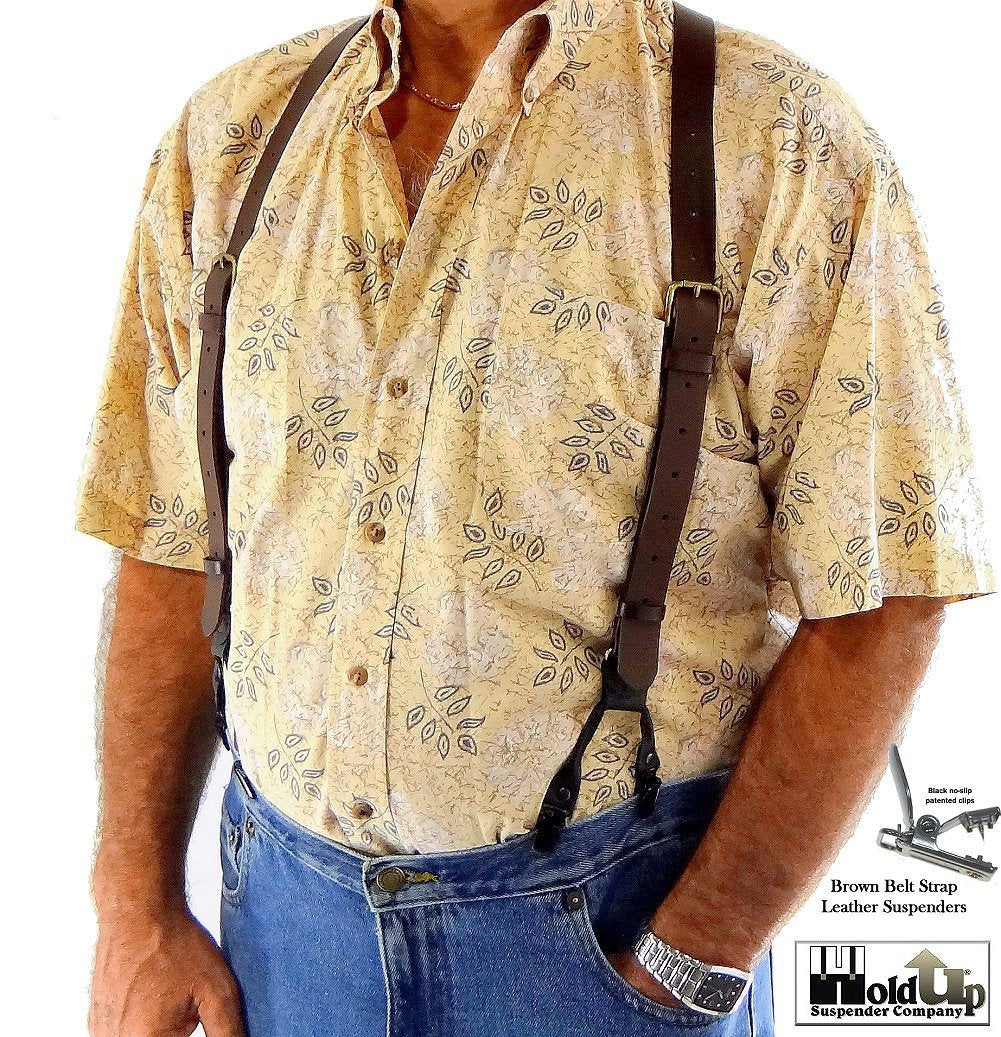 - Top grade Brown Y-back style leather crosspatch embossed with Hold-upĀ® Logo so you know your buy real Holdup brand leather suspenders