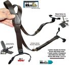 The antique brass tone buckle length adjuster and dark brown elastic comfort fit back strap make these bonded leather suspender braces comfortable to wear every day. These 1 inchĀ wide Brown strap leather Holdup Suspenders look and wear like old fashion western style cowboy suspender braces. The USA patented No-slip black clips attach at the top of the waistband to prevent waistband rollover so common with button on suspenders. Securely Order these dark brown bonded leather Strap style Double-Ups suspender braces here at Amazon using your credit card. We know you'll love these Brown Bonded Leather stylish Holdups that come in Belt strap or braided styles and brown or black color choices by backing these with a no-questions asked 30 day money back quality guarantee. These Holdup Leather casual Suspenders are made from top quality materials and are well worth the price.