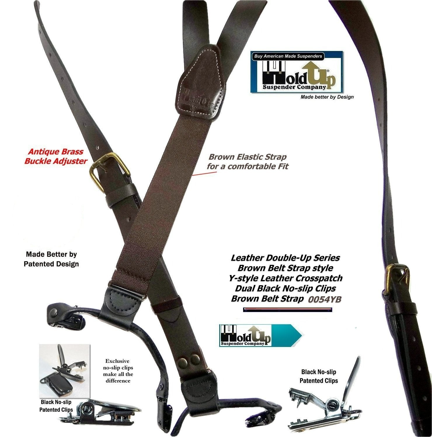 - Top grade Brown Y-back style leather crosspatch embossed with Hold-upĀ® Logo so you know your buy real Holdup brand leather suspenders