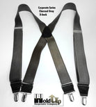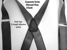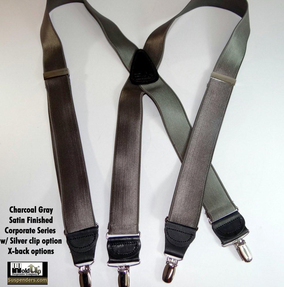 - Part of the 1 1/2" wide Corporate series HoldUp Suspender line in Charcoal Grey.