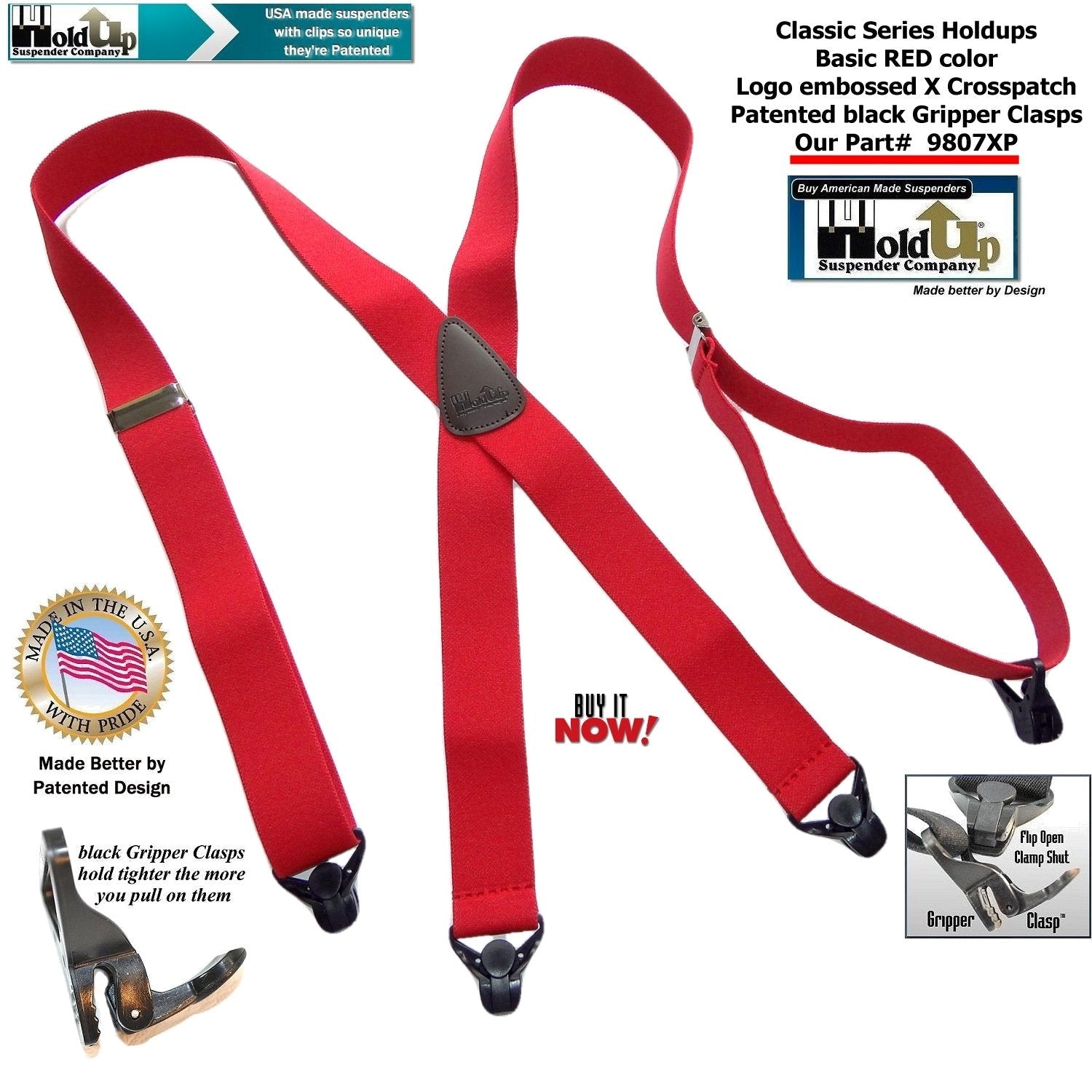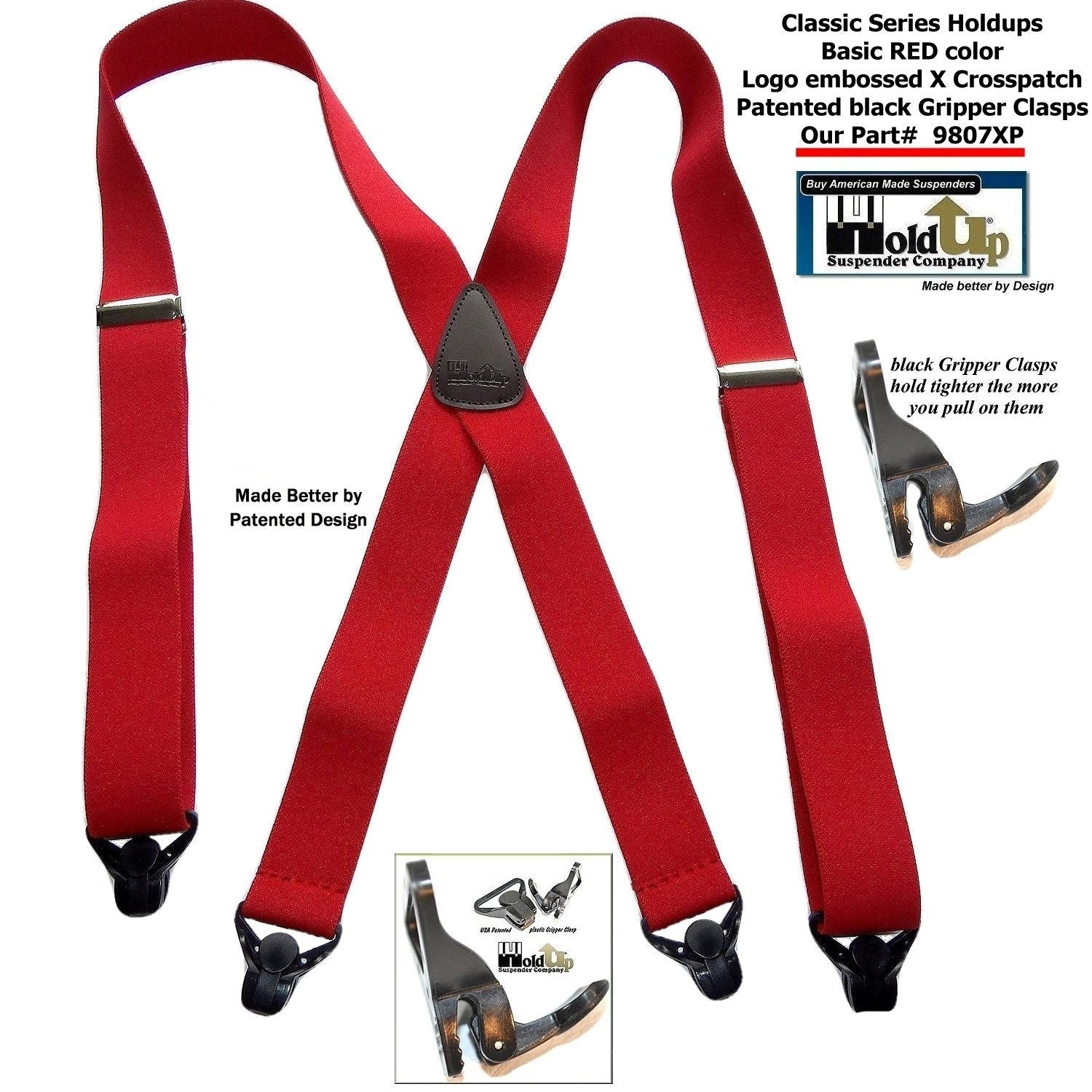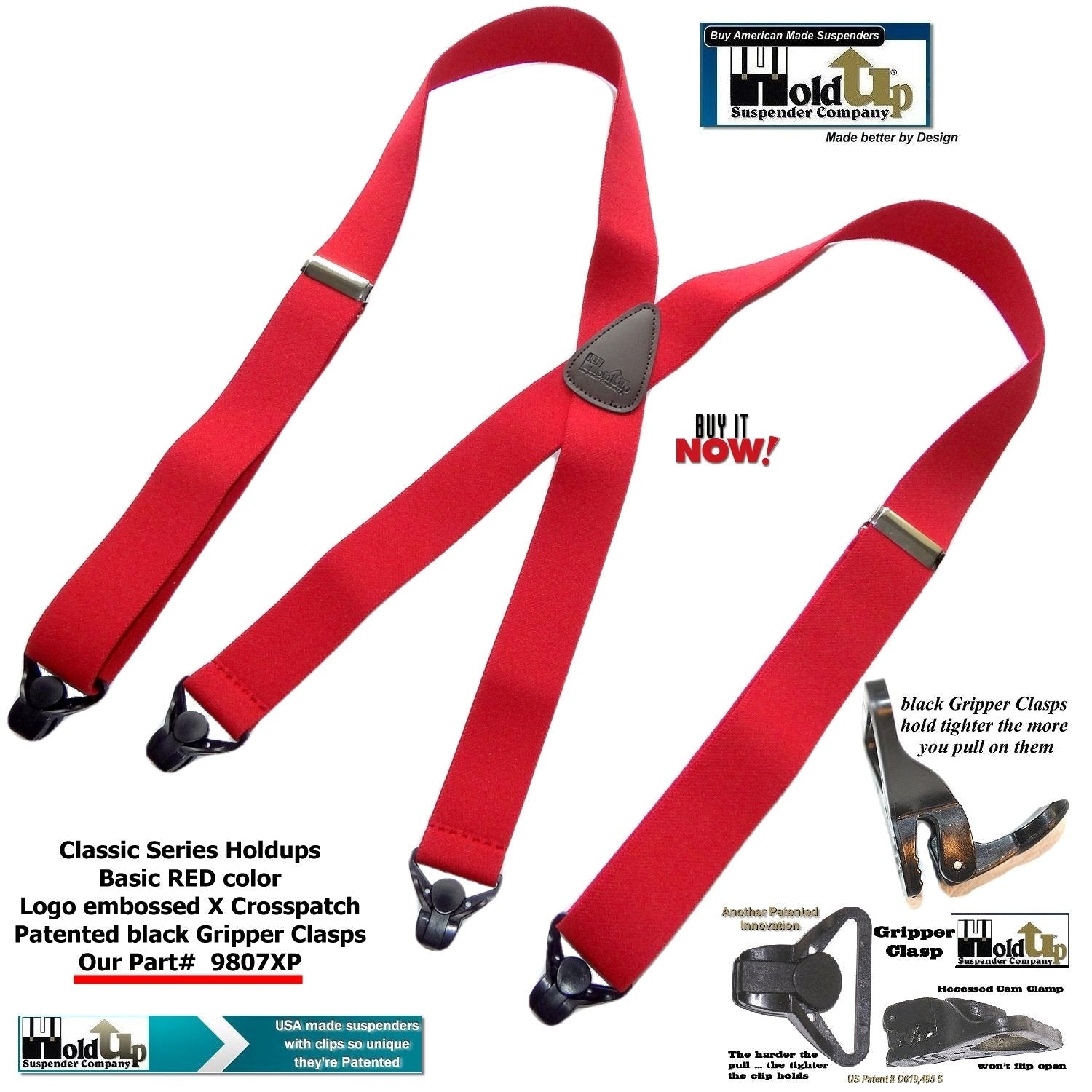 Classic RED Holdup X-back Suspenders with Patented strong black Gripper Clasps