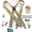 Hold-Ups Classic tan XL suspenders 1 1/2"wide 54' long with patented silver no-slip clips
