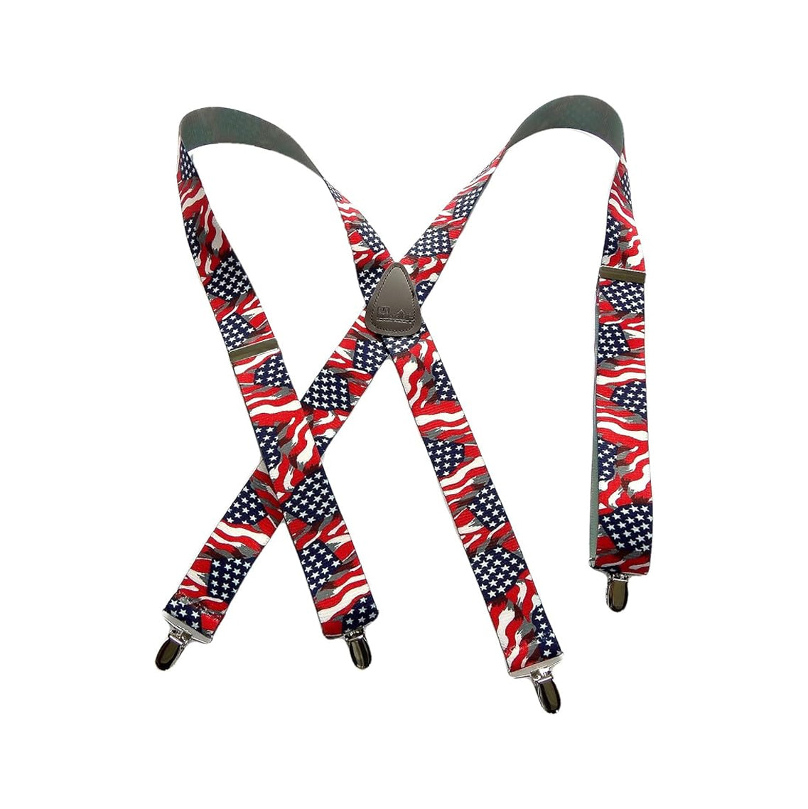 HoldUp Brand Classic Series USA Flag Pattern X-back Suspenders with Silver No-slip Clips