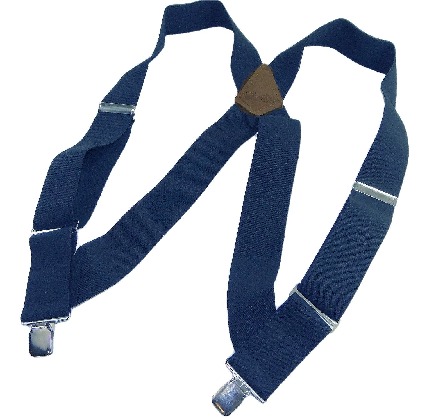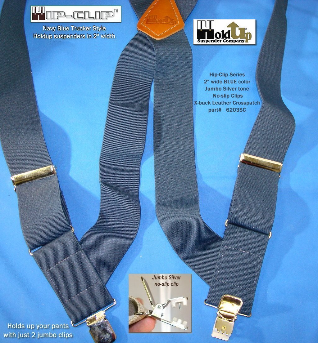 Navy Blue 2" Wide Hip-Clip Suspenders with Patented silver-tone no-slip jumbo clips