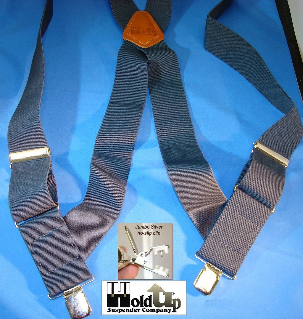- Patented jumbo nickel plated NO-SLIP® Jumbo suspender clips and matching metal length adjuster make these black trucker style Hip-Clips a very popular buy!